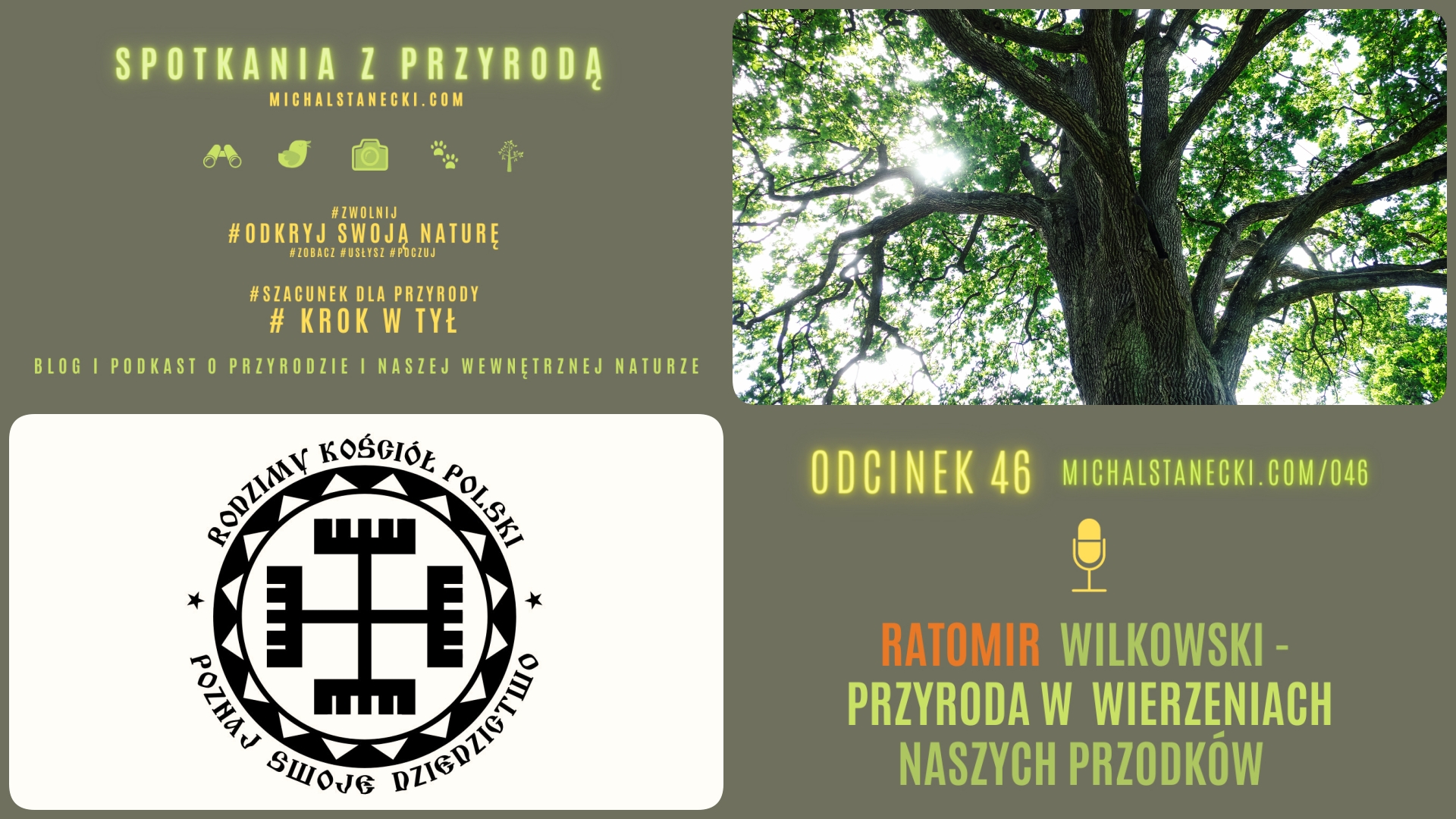 Dzisiaj raz jeszcze dotykamy powiązań Przyrody z religią i wiarą. Tym razem takiej relacji poszukamy w ramach naszej prakultury i naszej religii etnicznej. Moim gościem jest RATOMIR WILKOWSKI – żerca Rodzimego Kościoła Polskiego, z którym rozmawiam o Przyrodzie w wierzeniach naszych praprzodków.