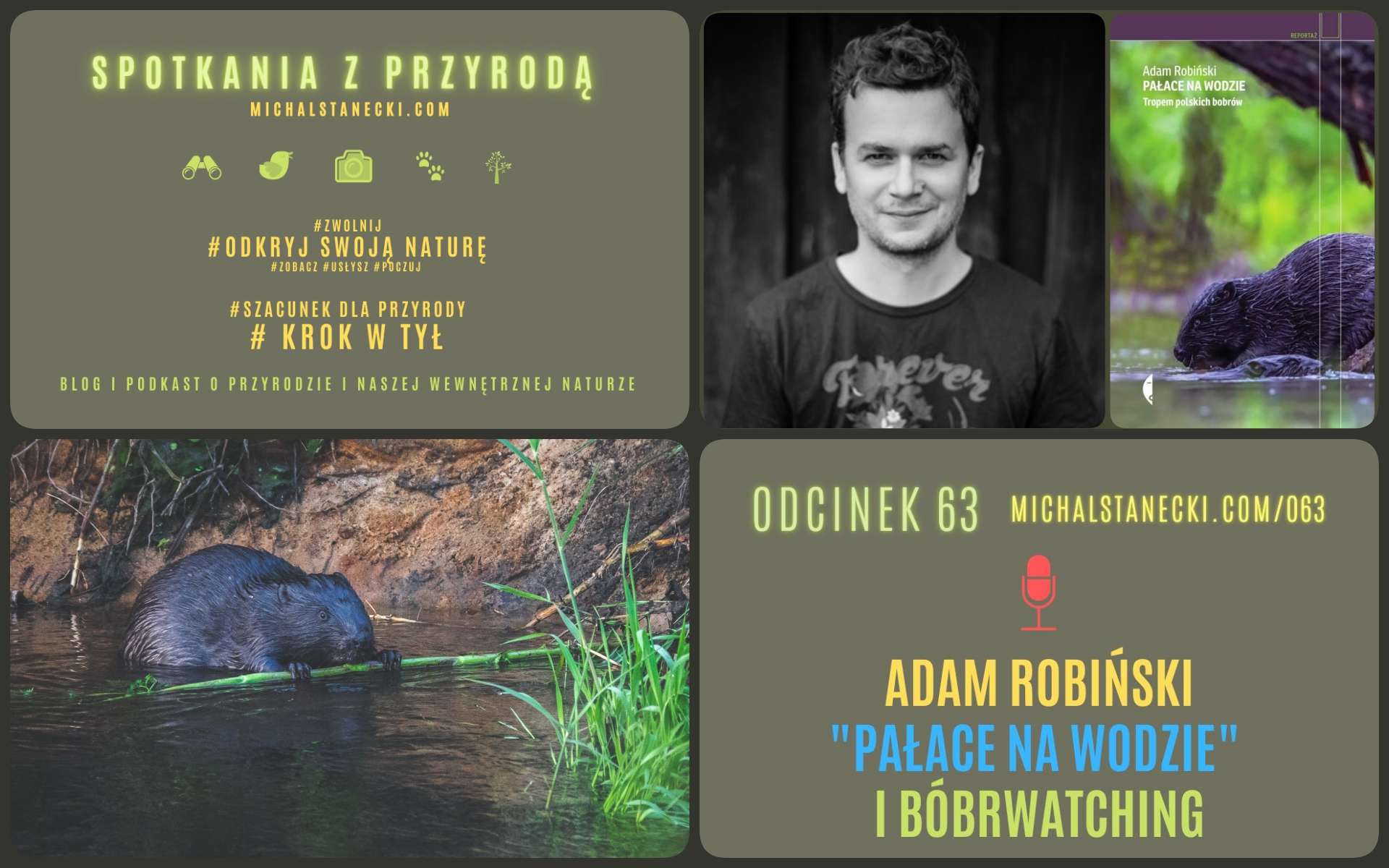 W 63 odcinku podkastu moim gościem jest Adam Robiński, z którym rozmawiam o Bobrach. Osią rozmowy jest książka Adama „Pałace na wodzie. Tropem polskich bobrów”. Rozmawiamy o bobrzej historii, w której przeplatają się losy zwierząt i ludzi. Adam udziela też kilku prostych rad, które mogą pomóc Wam w obserwowaniu bobrów.