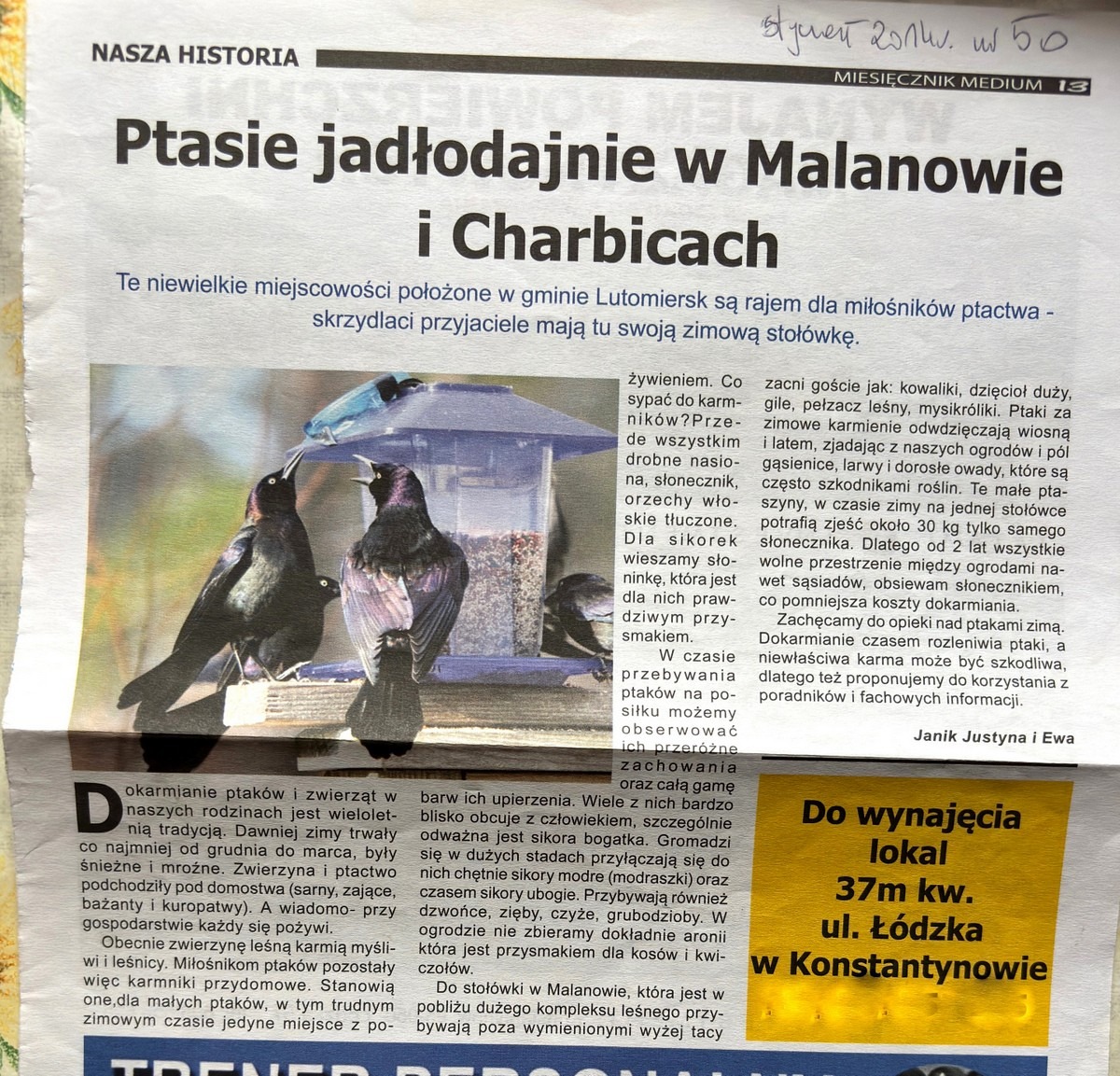 Pani Justyna – mieszkanka wsi Charbice Górne w gminie Lutomiersk. Miłośniczka ptaków.
