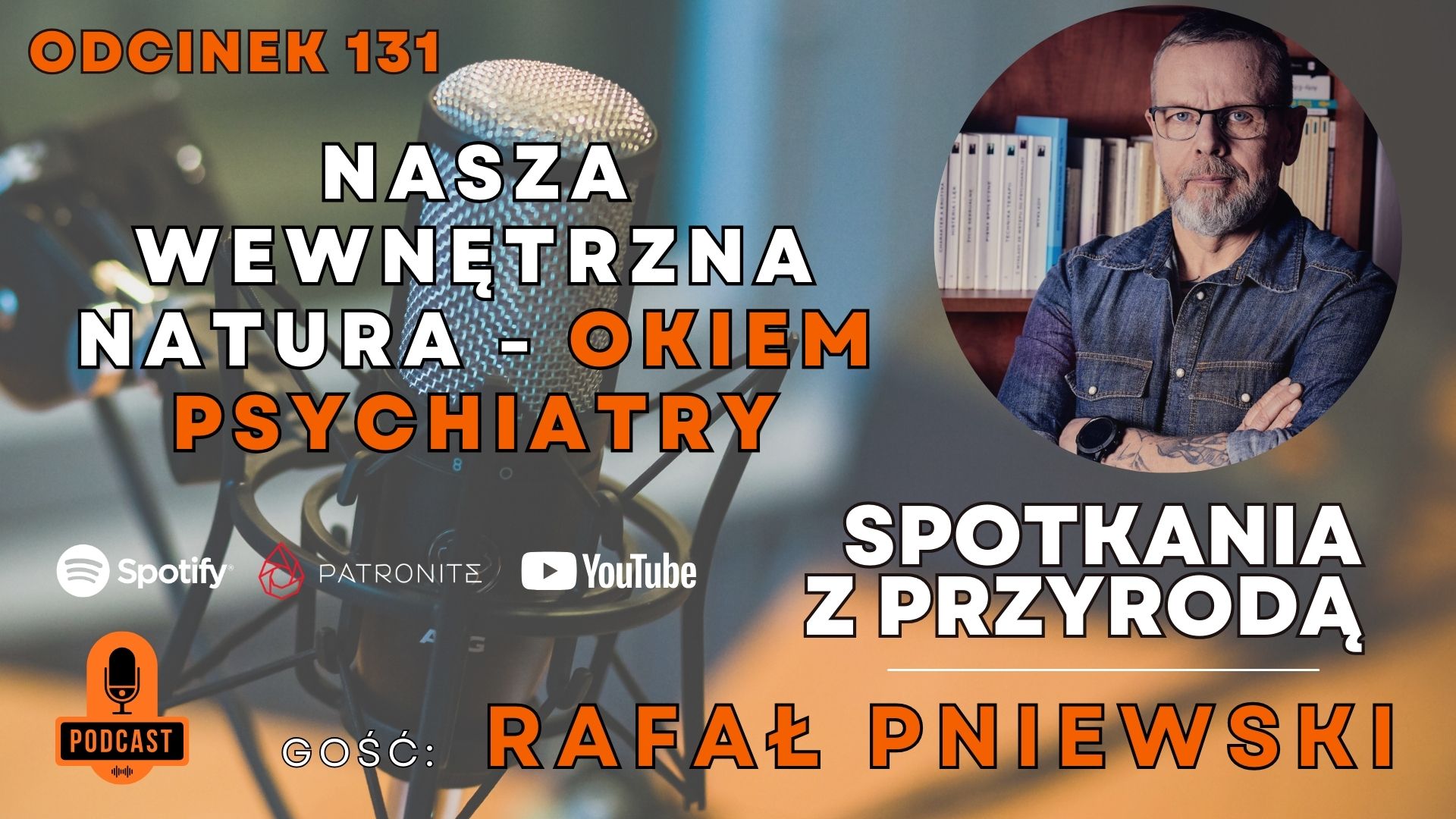 Moim gościem jest psychiatra i psychoterapeuta Rafał Pniewski — autor podcastów „Czy my się znamy” i „Okiem psychiatry”. Rozmawiamy o naszej wewnętrznej naturze, o tym, co dzieje się w ludzkiej psychice, gdy rzeczywistość zaczyna nas przerastać. O mechanizmach obronnych, które mają nas chronić, ale które czasem czynią nas ślepymi. I o tym, że kontakt z naturą może być jednocześnie lustrem i lekarstwem.
