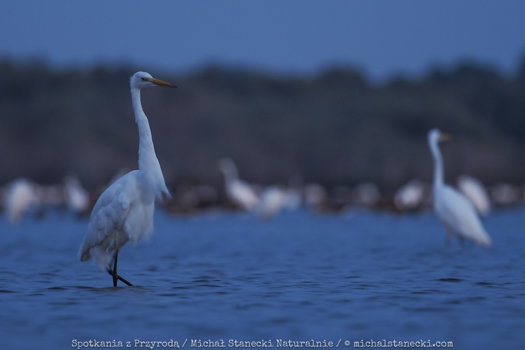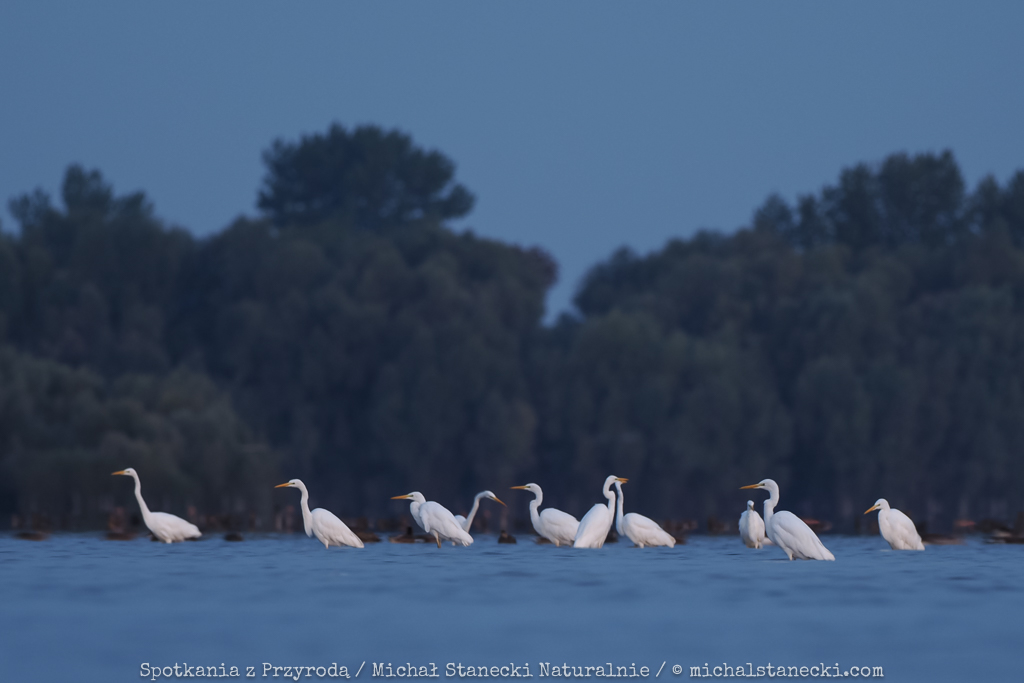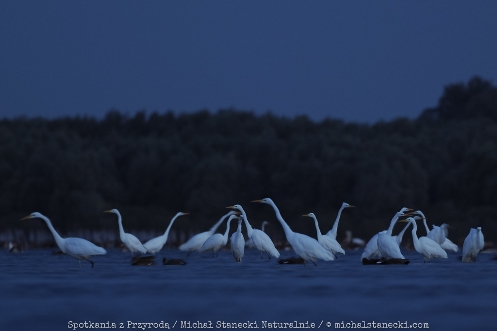 Kilka obrazków z wizyty w Ptasim Świecie. Praktycznie jeszcze w nocy położyłem się na błotnistym brzegu i czekałem na światło. Czyli klasyczna akcja z życia fotografa ptaków. Czaple zlatywały się tłumnie zwiastując piękne sceny i wymarzoną sesję w pierwszych promieniach słońca. Niestety jednak się nie powiodło. Ktoś spłoszył ptaki na kilka minut przed wschodem. Pozostał wieli niedosyt, bo trzeba będzie czekać na kolejną taką okazję. Na otarcie łez pozostało kilka kadrów zrobionych jeszcze przed wschodem słońca.