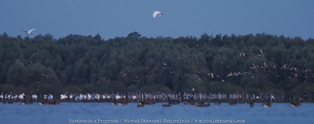 zdjęcia zostały zrobione przed wschodem słońca z bardzo dużej odległości / choć technicznie nie są dobre, to obrazują ogromne ilości ptaków