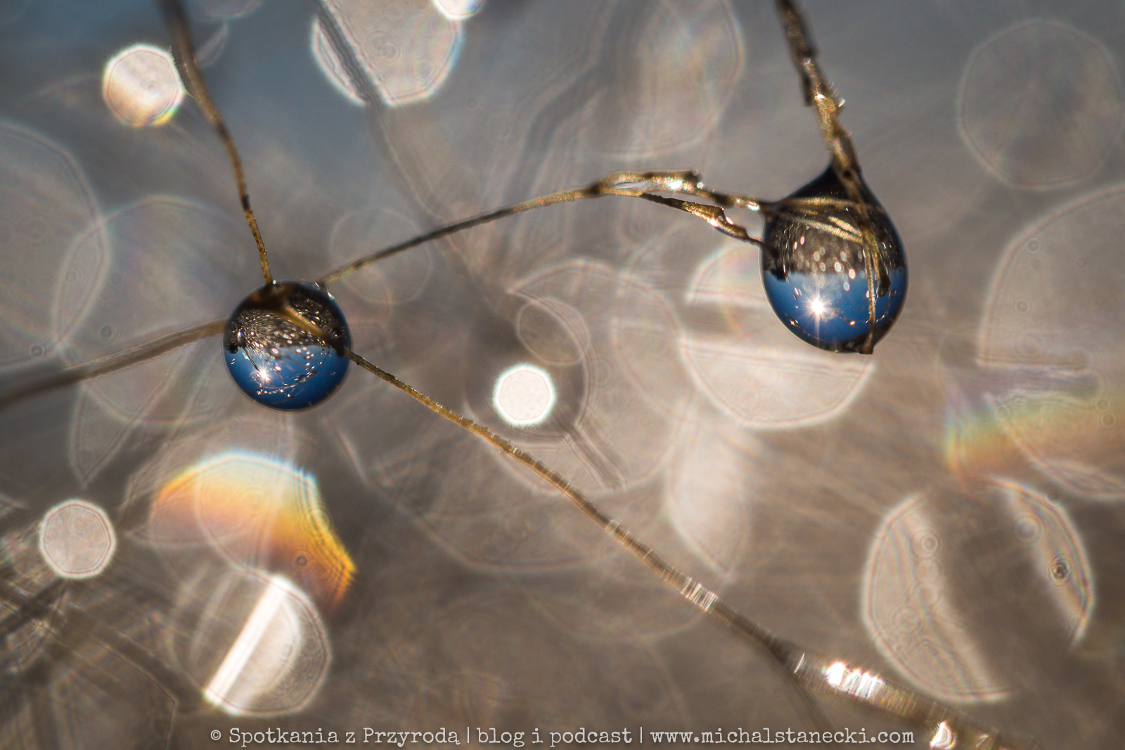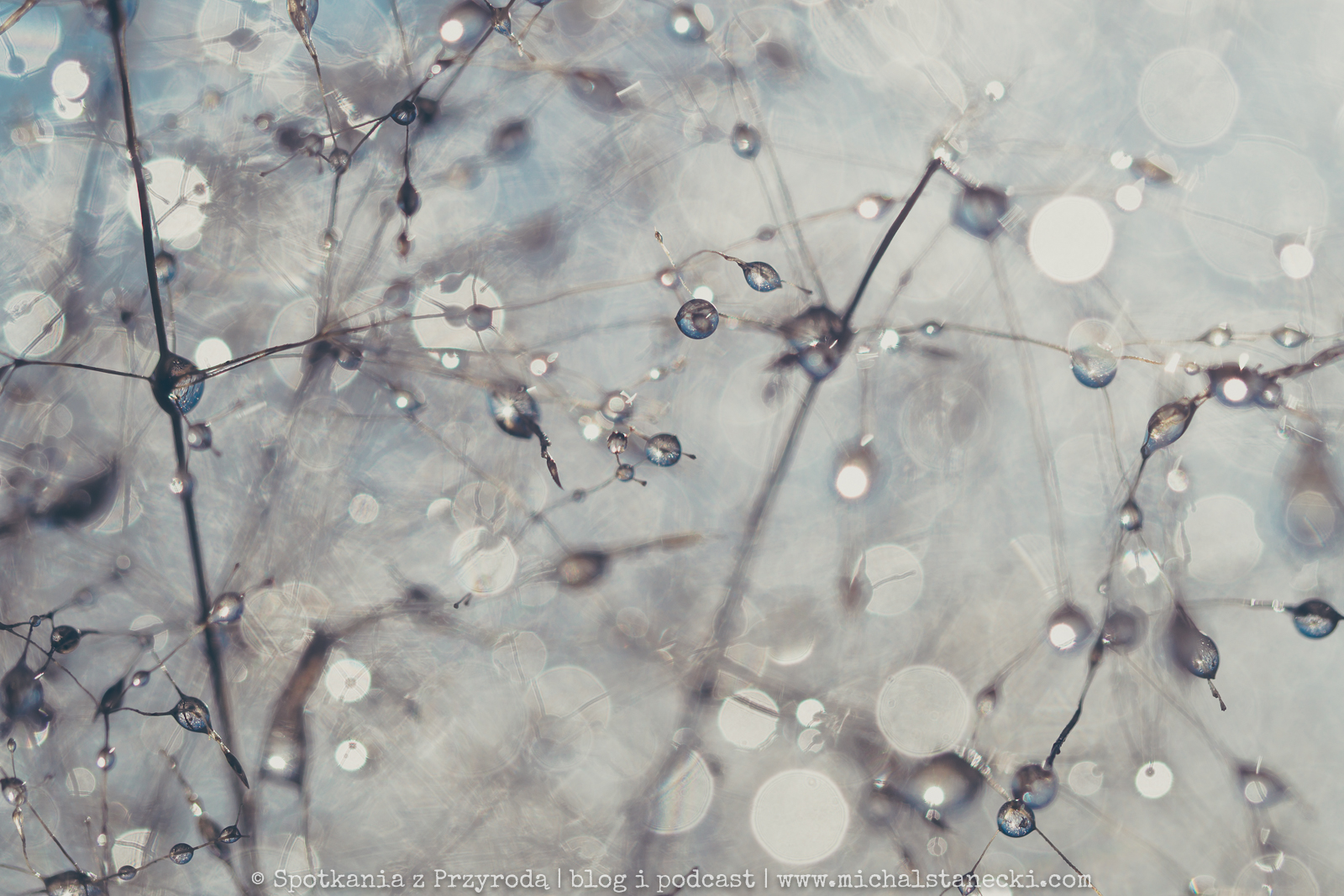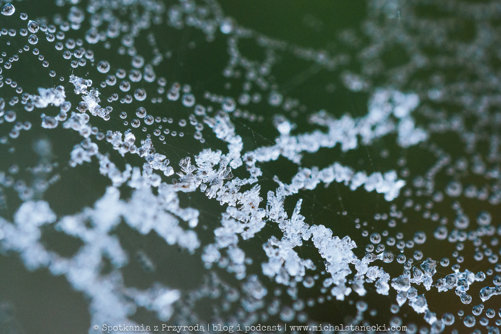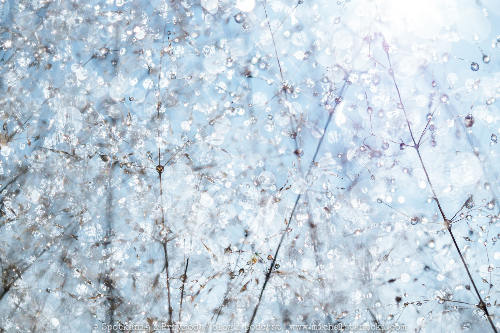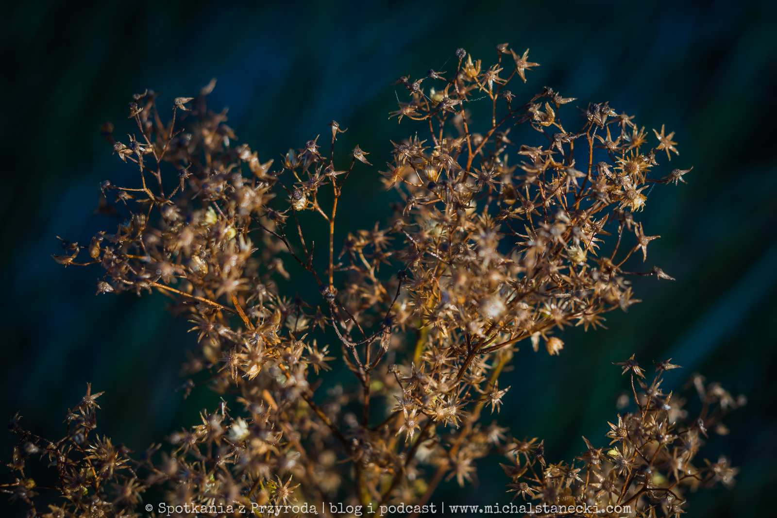 Gdy wracałem, zatrzymałem się jeszcze na łące, na której ciepło promieni słonecznych zaczęło rozpuszczać drobinki lodu, które w trakcie nocy, na drobnych roślinach wyczarował mróz. To dopełniło przeżycia tego poranka i zbudowało mój cały dzień. Dla takich poranków warto zarywać czarne i chłodne, jesienne noce. Zdecydowanie warto …