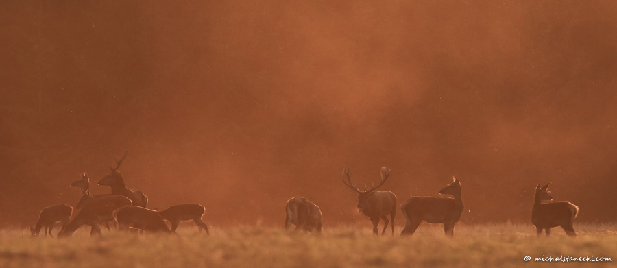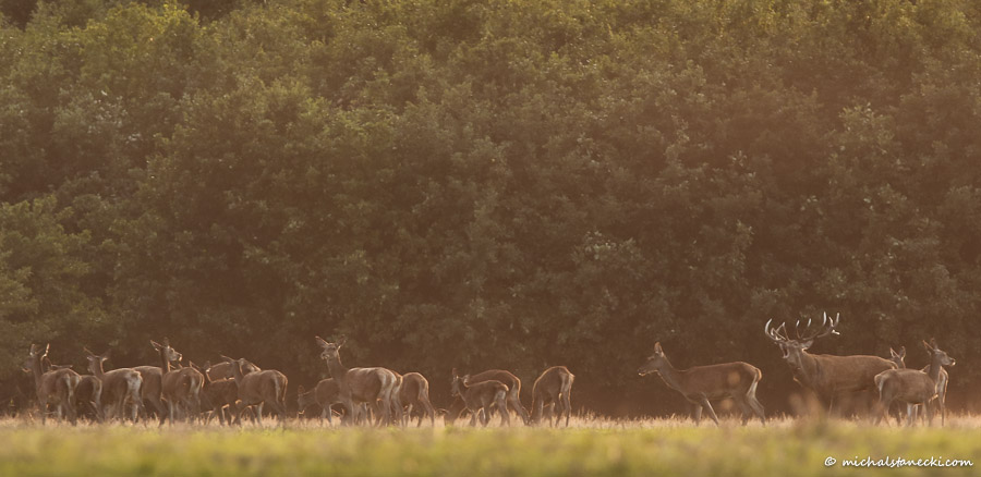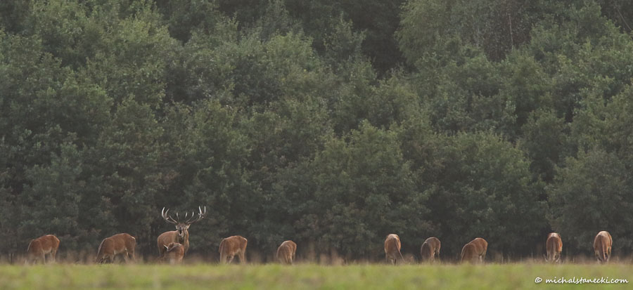 U jeleni wzrasta aktywność, ale nadal daleko jej do tej typowej z końca września. Pewnie z powodu pogody i utrzymujących się ciepłych nocy. Stado przemieszcza się po łące, byk ryczy, ale tym scenom nadal brakuje akcji. Może coś się jeszcze zmieni …