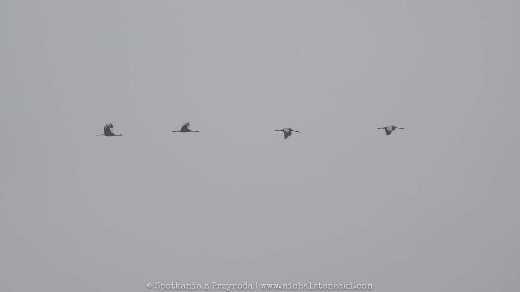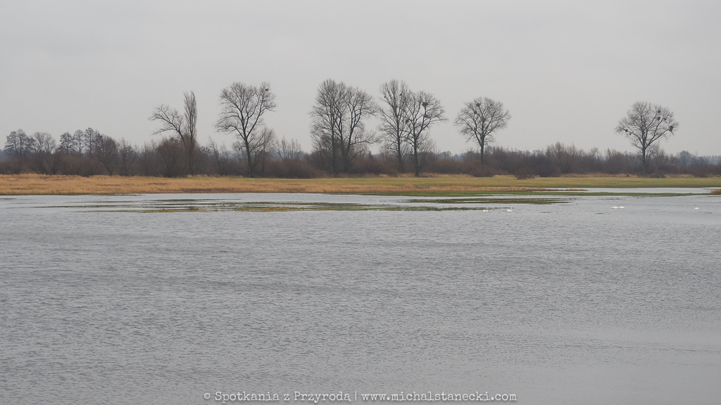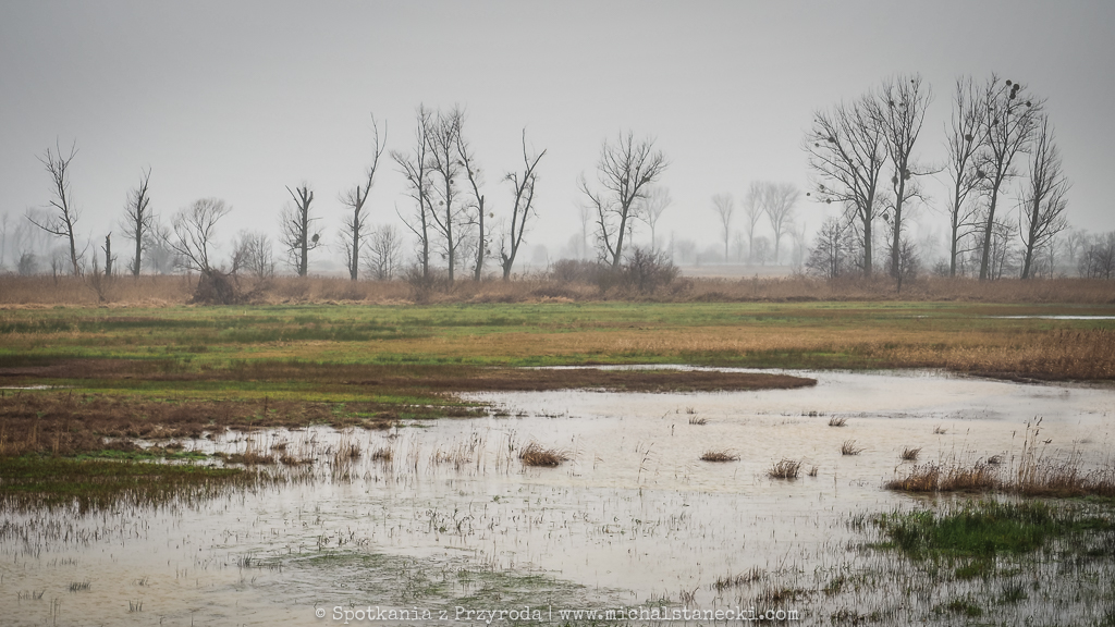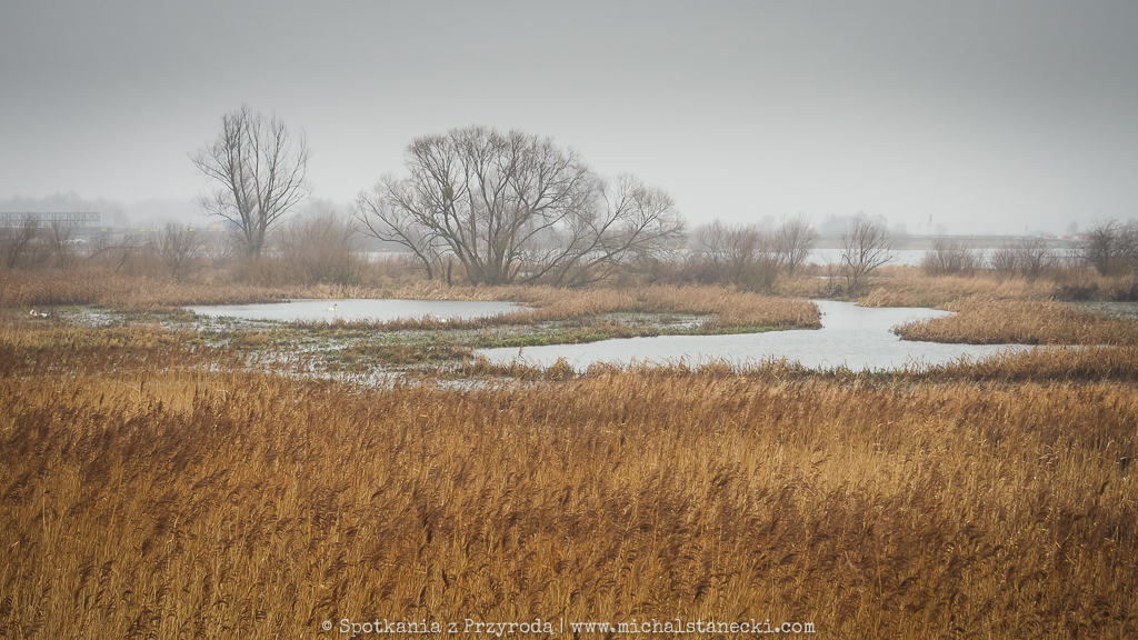 Póki co tylko ta astronomiczna, bo za oknem wciąż utrzymuje się najgorszy wariant jesieni. Deszcz i deszcz zacinający wraz z silnymi podmuchami wiatru. Choć ciężko o motywację do wyjścia z domu, ruszamy na długi spacer wzdłuż Warty. Na łąkach stoi woda, której w niektórych miejscach jest tak dużo, że tworzą się rozległe, płytkie jeziora. Gdzieś na niebie, nad warstwą niskich chmur słychać lecące gęsi. Na mokrych łąkach w kilku miejscach widać łabędzie. Jest też liczące kilkadziesiąt ptaków stado czajek. Nagle zupełnie znikąd pojawia się też samotna śmieszka. W oddali przelatują żurawie. W kilku miejscach widać ślady obecności bobrów. Widać też ich żeremie. Jest bardzo mokro, bo deszcz nie przestaje zacinać…