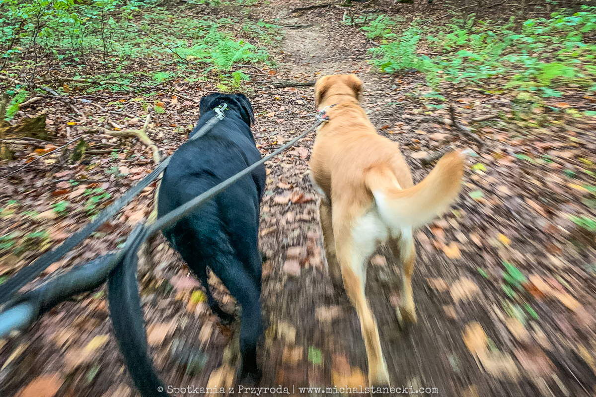 Ogrodzona leśna działka jest ich królestwem. W większość weekendów stanowi naszą bazę do wypadków w teren. Jest doskonałym punktem wypadowym na długie spacery po lasach i łąkach. W okolicy działki mamy też gdzie pobiegać.