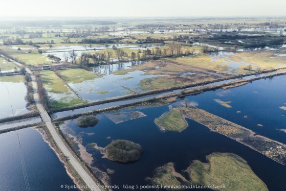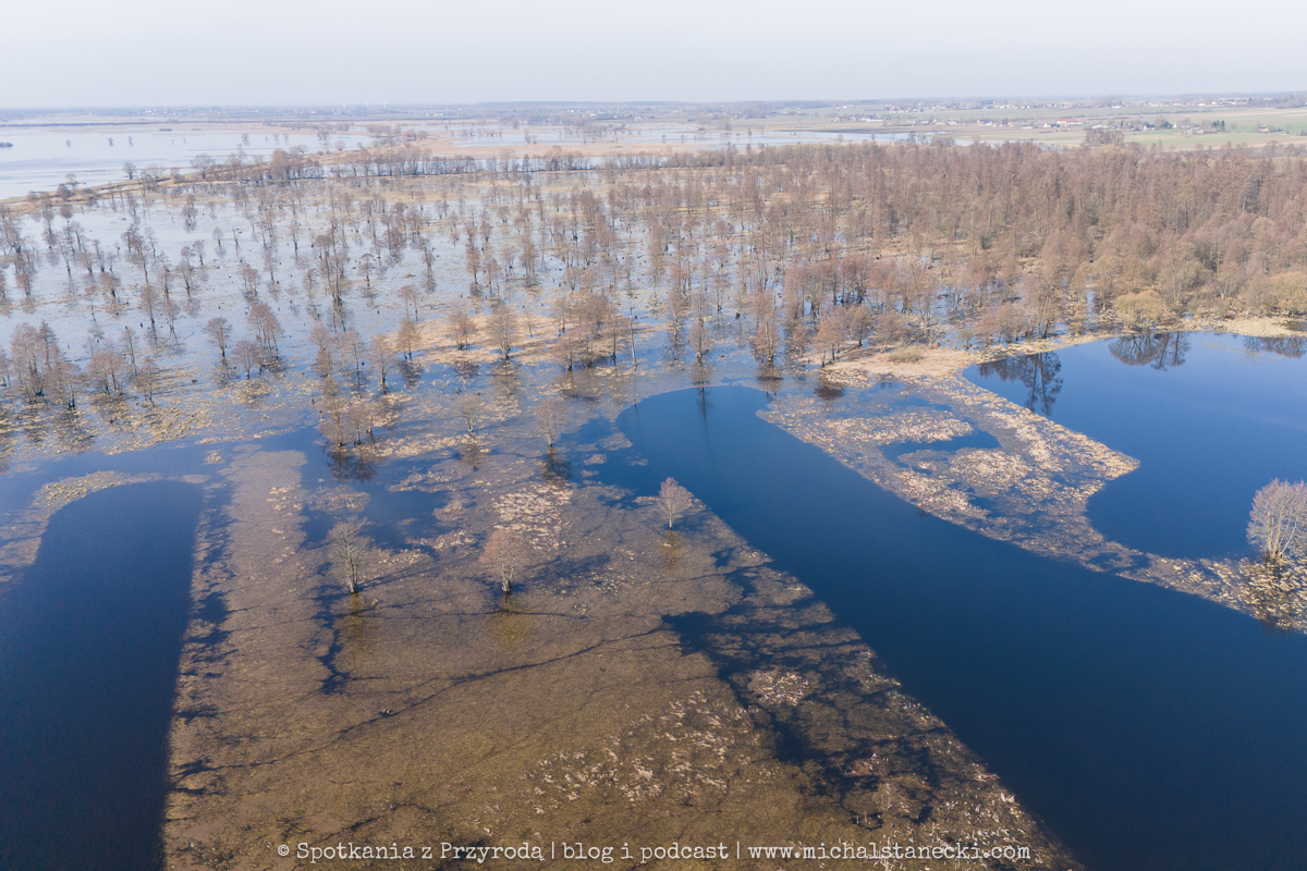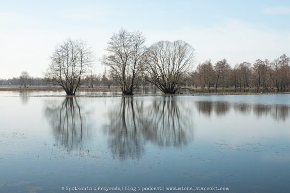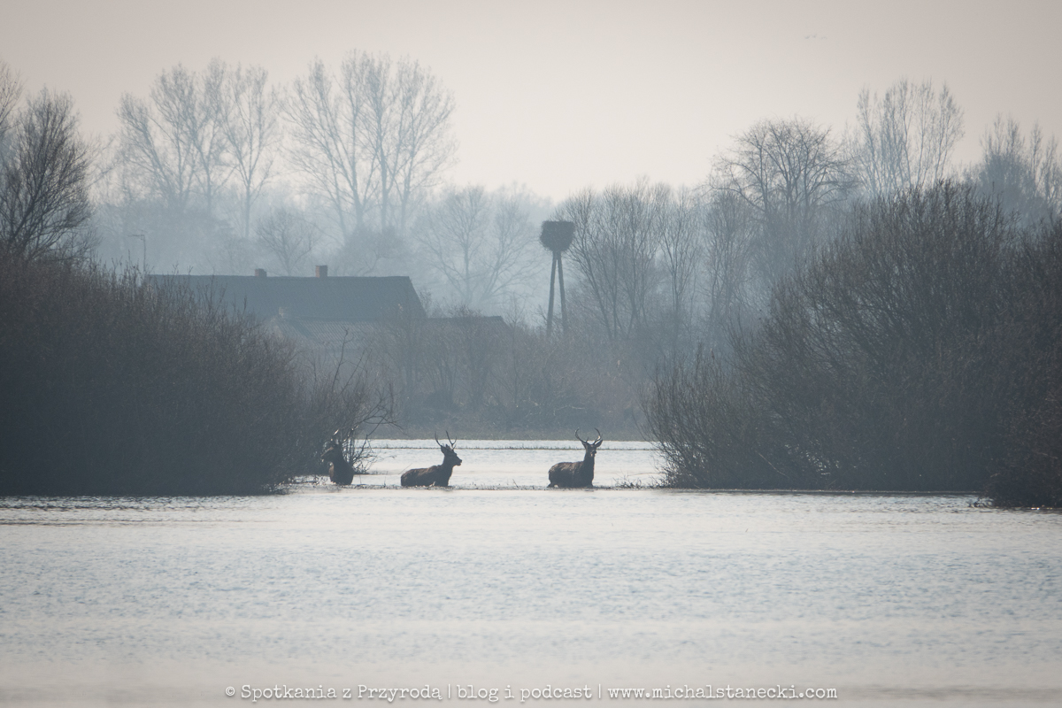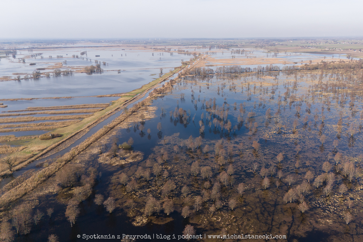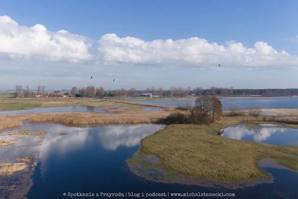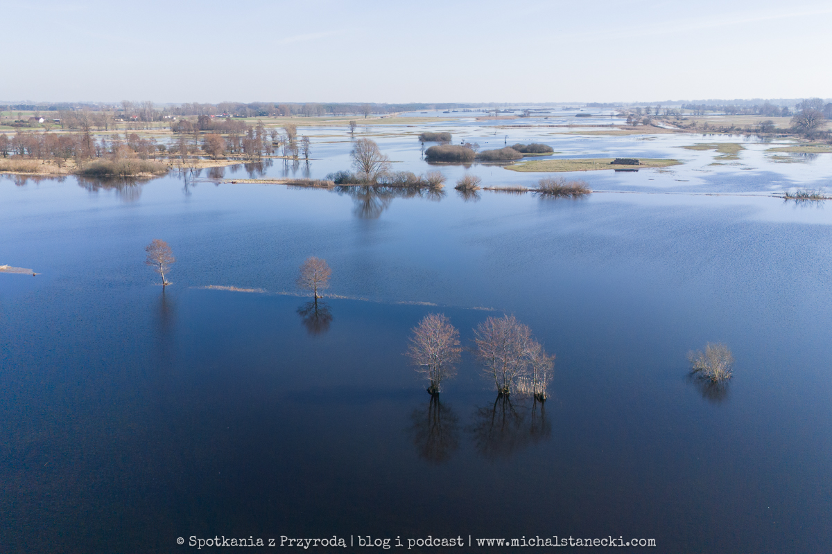 Oto fotograficzny zapis przedwiośnia w Dolinie Neru. Takiej wody nie pamiętamy od wielu lat. Z wielkich rozlewisk korzystają migrujące ptaki, wśród których dominują gęsi, których nocujących w dolinie ornitolodzy naliczyli tego dnia około 14 000. W powietrzu, na wodzie i na łąkach widzieliśmy tez kilka gatunków kaczek, czajki, siewki złote, żurawie, skowronki i lerki, a wśród zadrzewień słychać rozkrzyczane dzięcioły. Bonusem było kilka saren, a także trzy jelenie, które przeprawiały się przez wodę pomiędzy zaroślami. Słoneczny dzień w dolinie, to dla nas i innych spotkanych obserwatorów i miłośników przyrody.