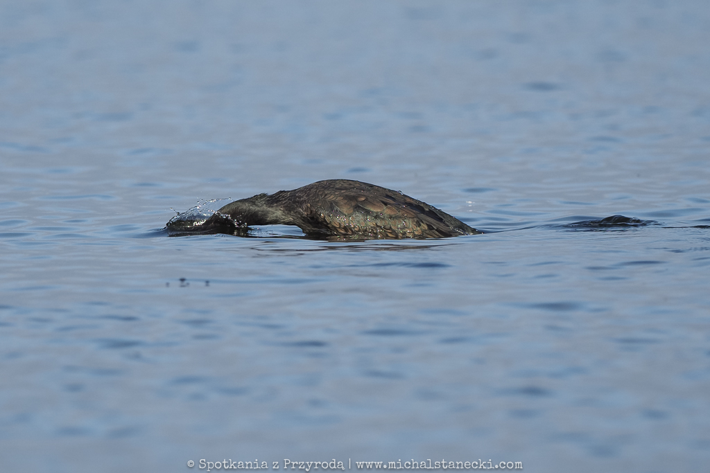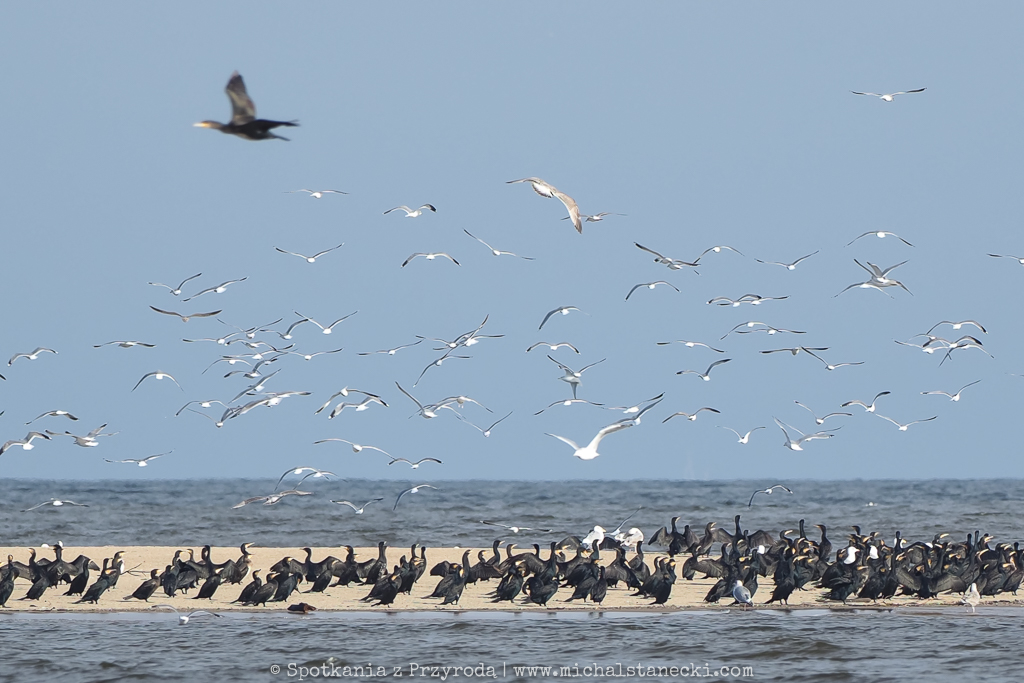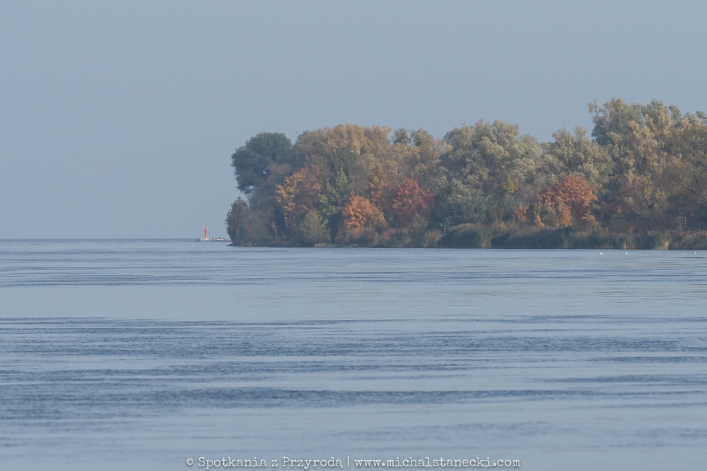 Październik to doskonały czas na nadmorskie obserwacje ptaków. Temat ten sygnalizowałem w „kalendarzu obserwatora i fotografa”. Najczęściej pojawiałem się na wybrzeżu w listopadzie, kiedy wiele gatunków już przeleciało. W tym roku trafiłem na czas wzmożonej migracji ptaków i to wielu różnych gatunków. W trakcie wędrówki były m.in. gęsi i siewki, ale także gawrony i całe mnóstwo wróblaków. Jak co roku, odwiedziłem Ujście Wisły (Świbno i Mikoszewo), gdzie zazwyczaj zarówno jesienią, jak i zimą zbierają się duże ilości ptaków. Tym razem było podobnie. Na spokojnych wodach Zatoki, po obu stronach ujścia, na wodzie i na odsłoniętych łachach gromadzili się przedstawiciele rozmaitych gatunków.