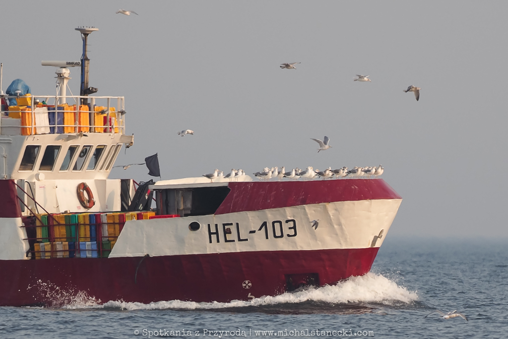 jak w innych miejscach na wybrzeżu również na Helu dominowały mewy, m.in śmieszki i srebrzyste, których było tam najwięcej