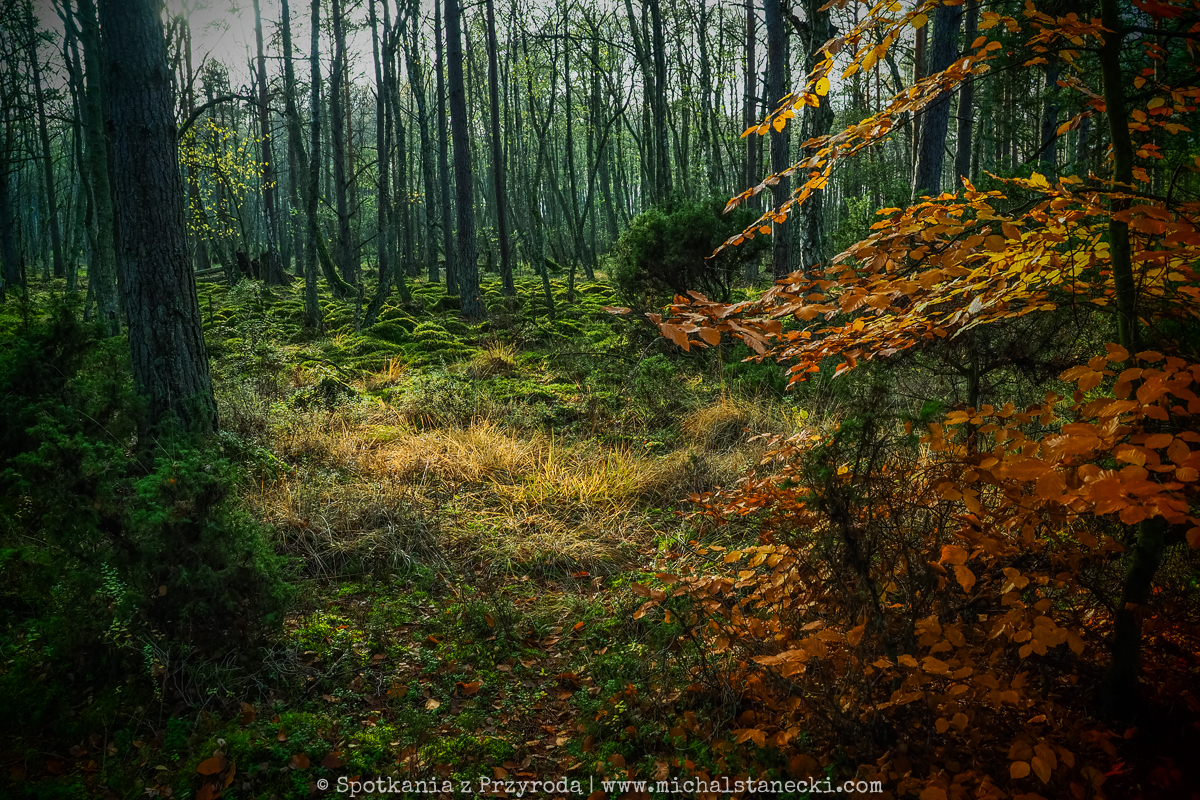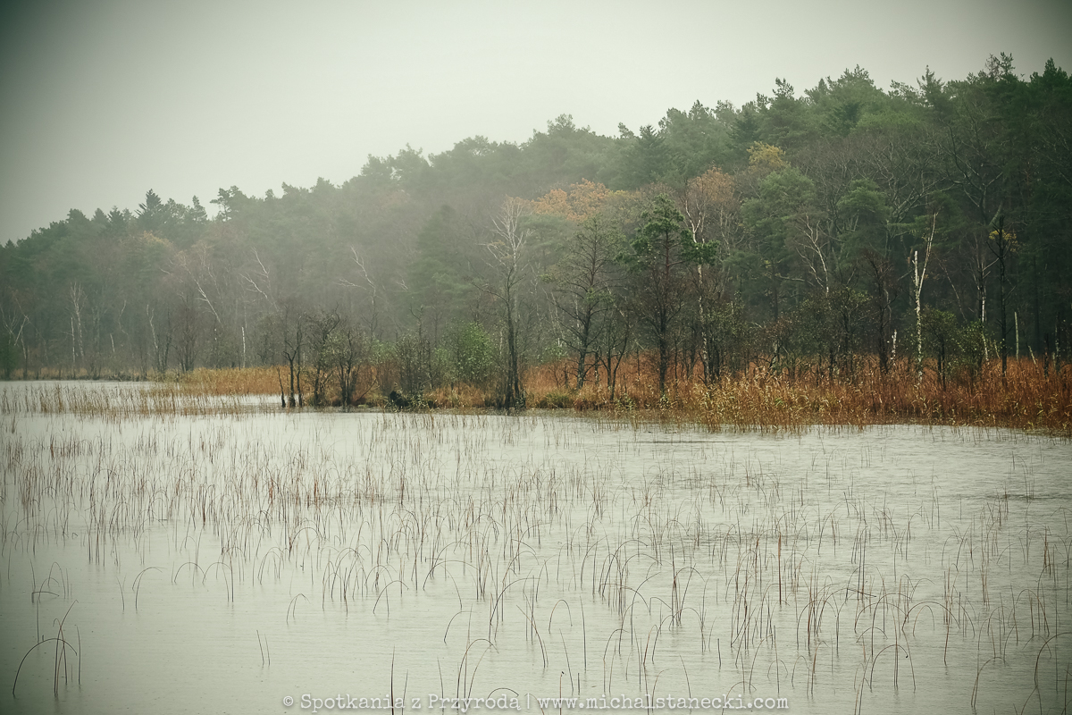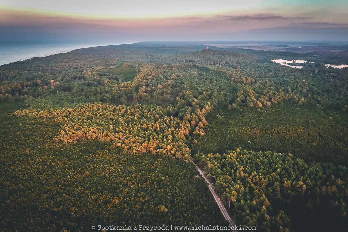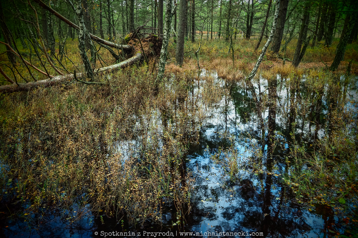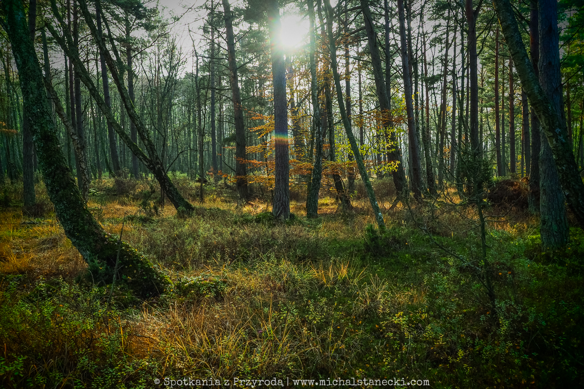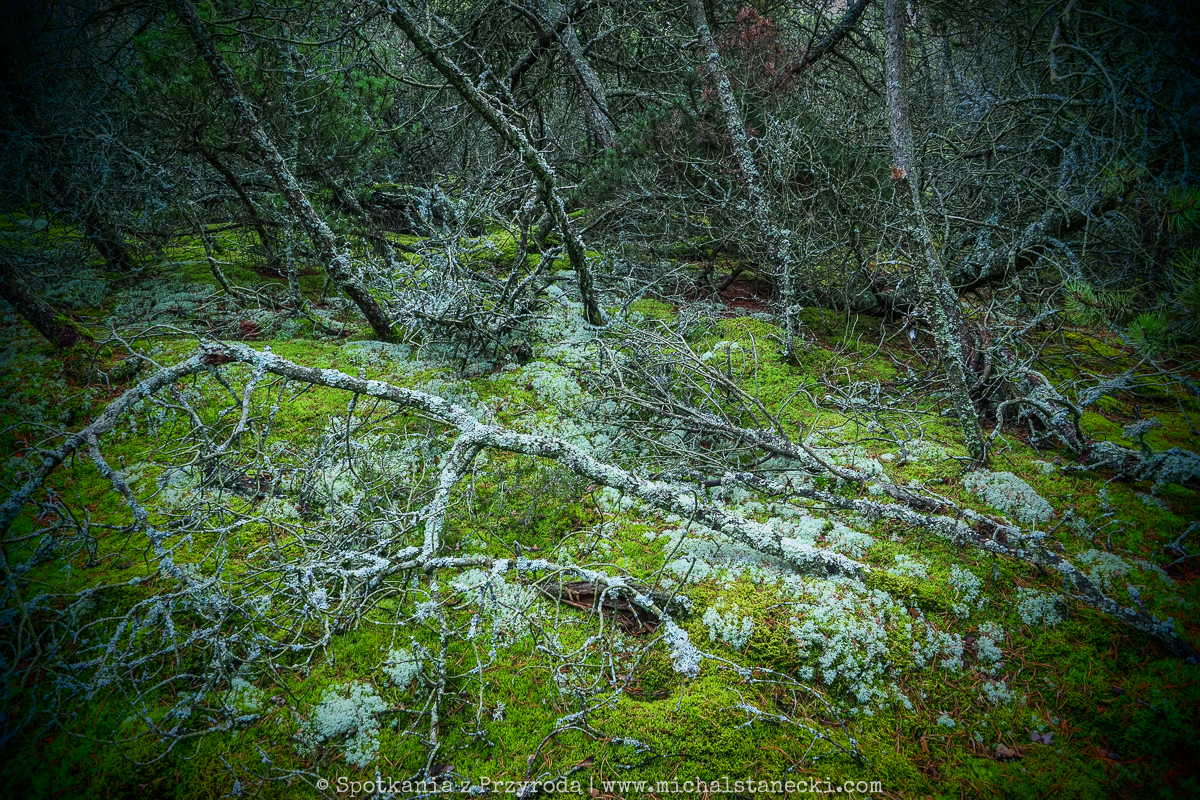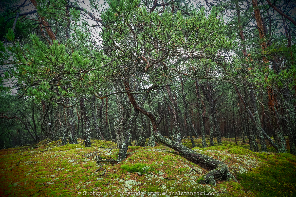 Słowiński Park Narodowy najczęściej kojarzony jest z ruchomymi wydmami. Choć są one uznawane za największą atrakcję Parku, to nas oczarowały lasy. Całodniowe wędrówki po parkowych szlakach pozwoliły nam zobaczyć lasy osadzone w zupełnie innych środowiskach. Suche (piaszczyste) bory sosnowe, karłowate sosenki rosnące szerokimi połaciami wzdłuż wybrzeża, bory bażynowe, torfowiska, i wreszcie zalane lasy, do pokonania których niezbędne były kalosze. Oczywiście SPN to także jeziora, typowe wydmy i plaże, ale nas zdecydowanie najbardziej urzekły wiecznie zielone iglaste lasy, które otulone jesiennym klimatem listopadowego chłodu i ciężkich chmur prezentowały się wyjątkowo.
