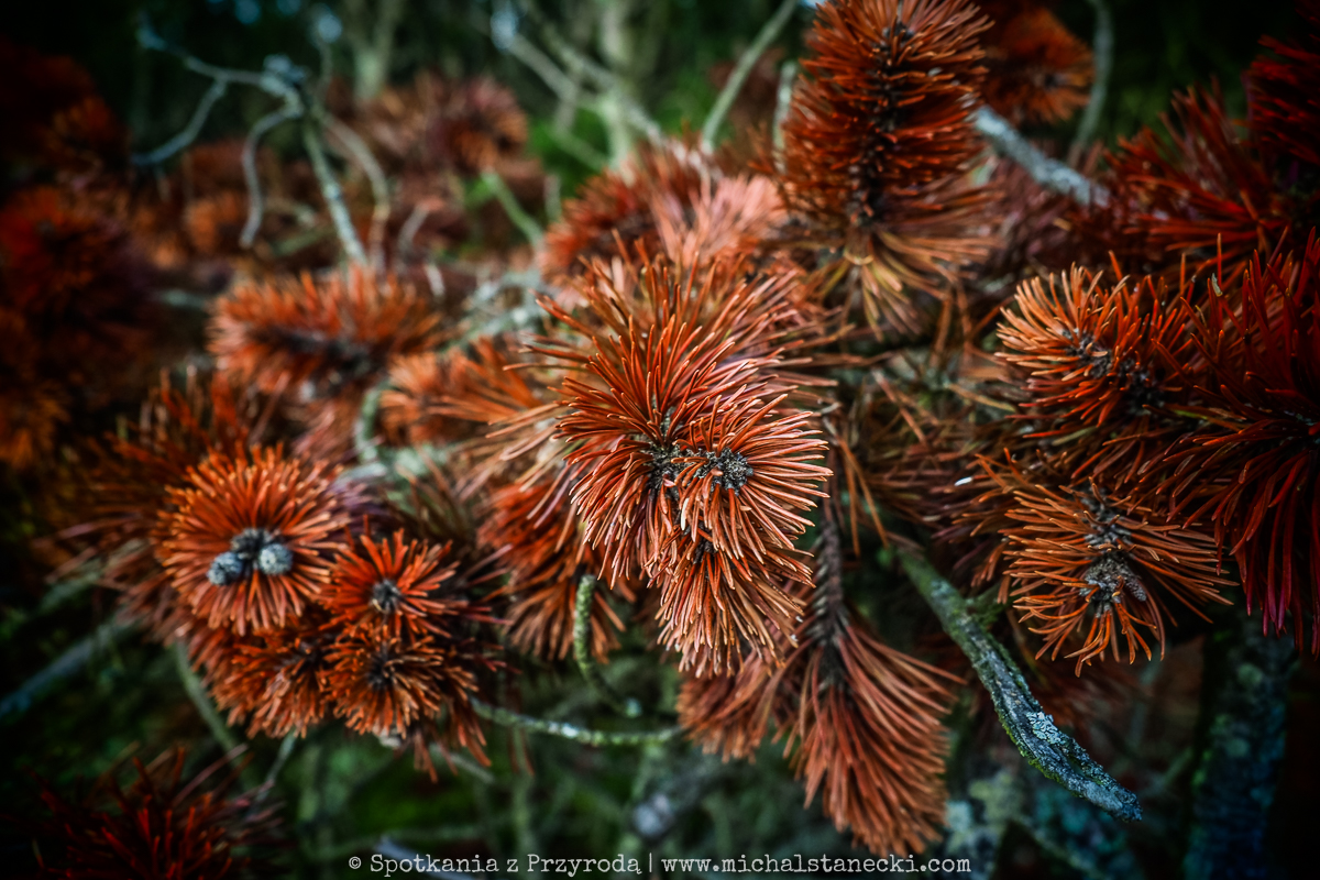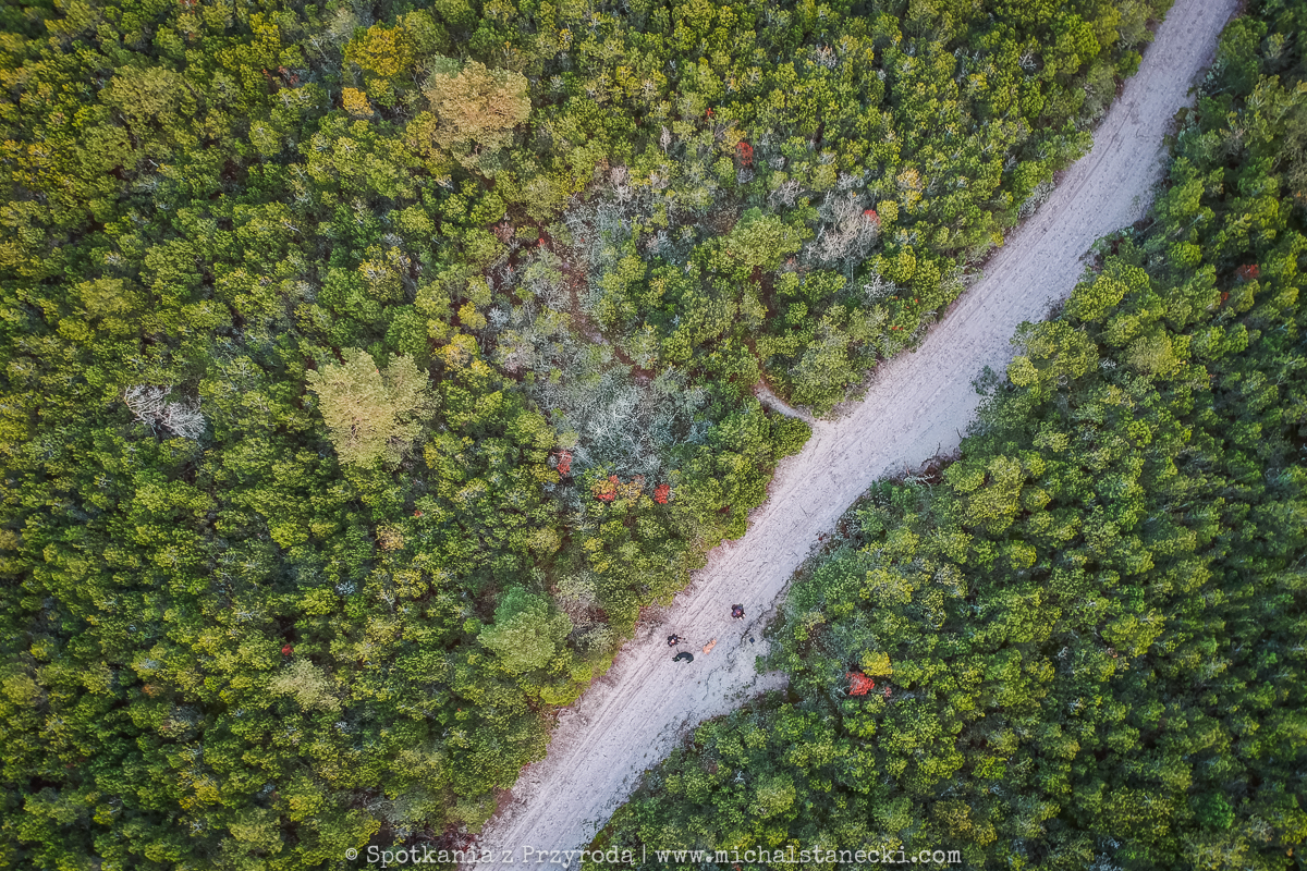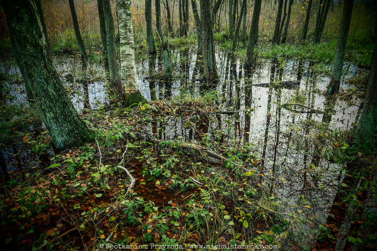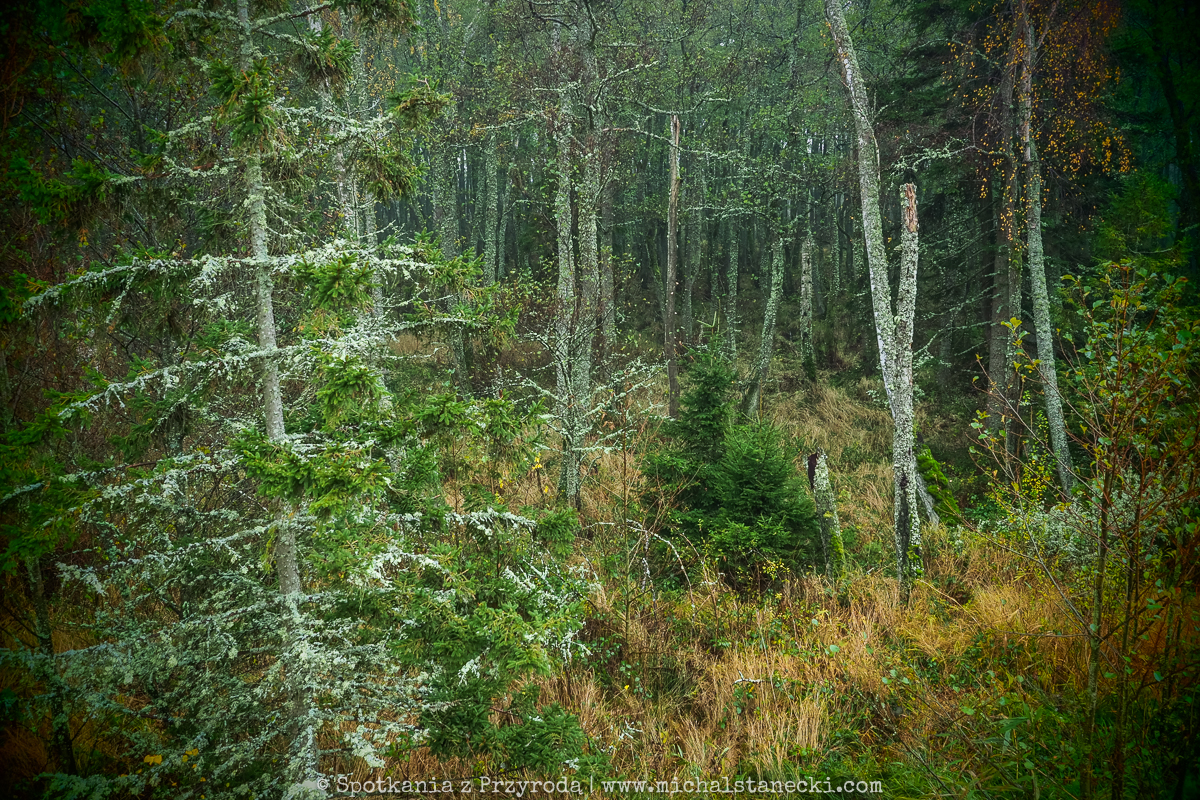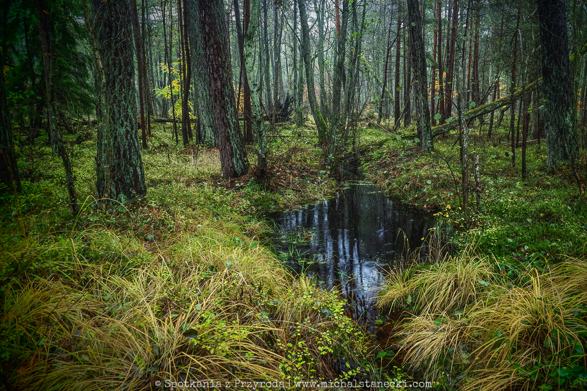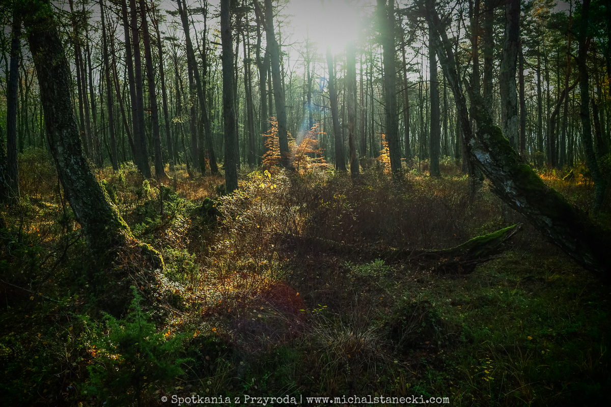 Słowiński Park Narodowy najczęściej kojarzony jest z ruchomymi wydmami. Choć są one uznawane za największą atrakcję Parku, to nas oczarowały lasy. Całodniowe wędrówki po parkowych szlakach pozwoliły nam zobaczyć lasy osadzone w zupełnie innych środowiskach. Suche (piaszczyste) bory sosnowe, karłowate sosenki rosnące szerokimi połaciami wzdłuż wybrzeża, bory bażynowe, torfowiska, i wreszcie zalane lasy, do pokonania których niezbędne były kalosze. Oczywiście SPN to także jeziora, typowe wydmy i plaże, ale nas zdecydowanie najbardziej urzekły wiecznie zielone iglaste lasy, które otulone jesiennym klimatem listopadowego chłodu i ciężkich chmur prezentowały się wyjątkowo.