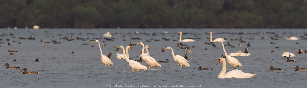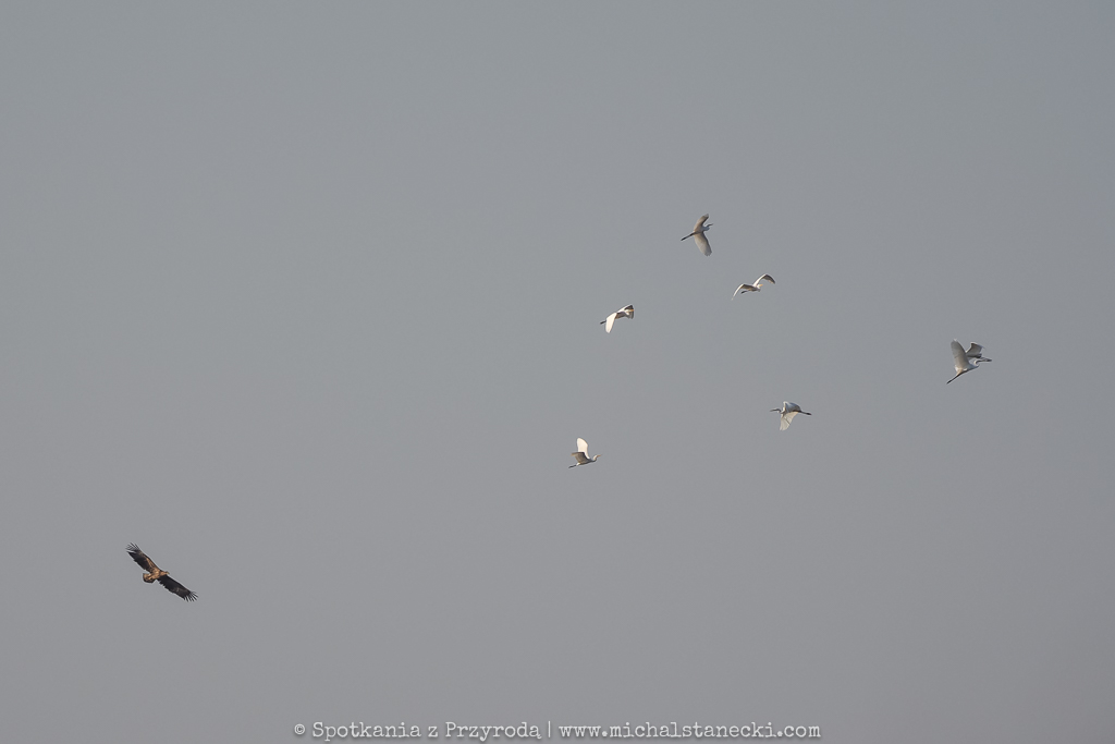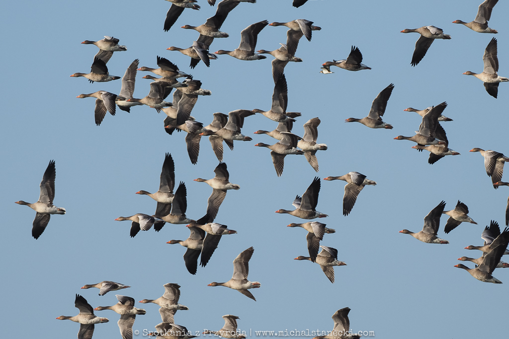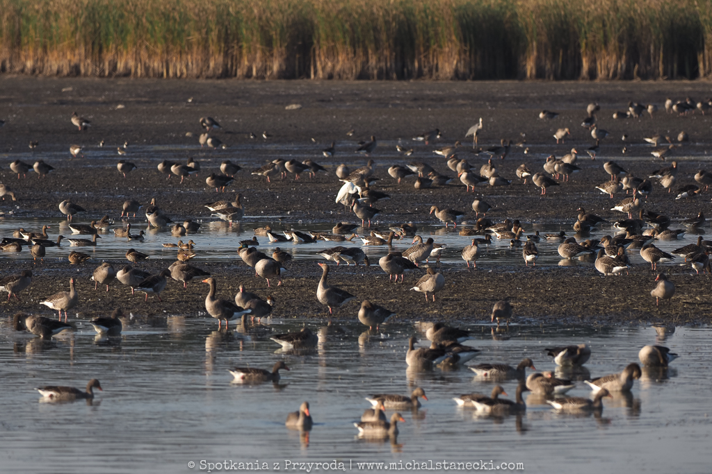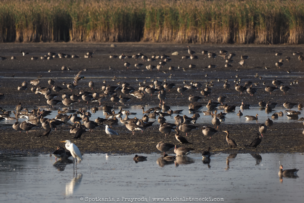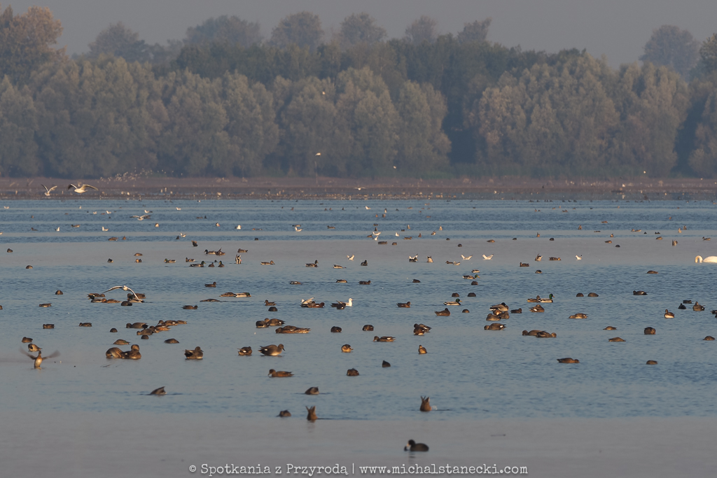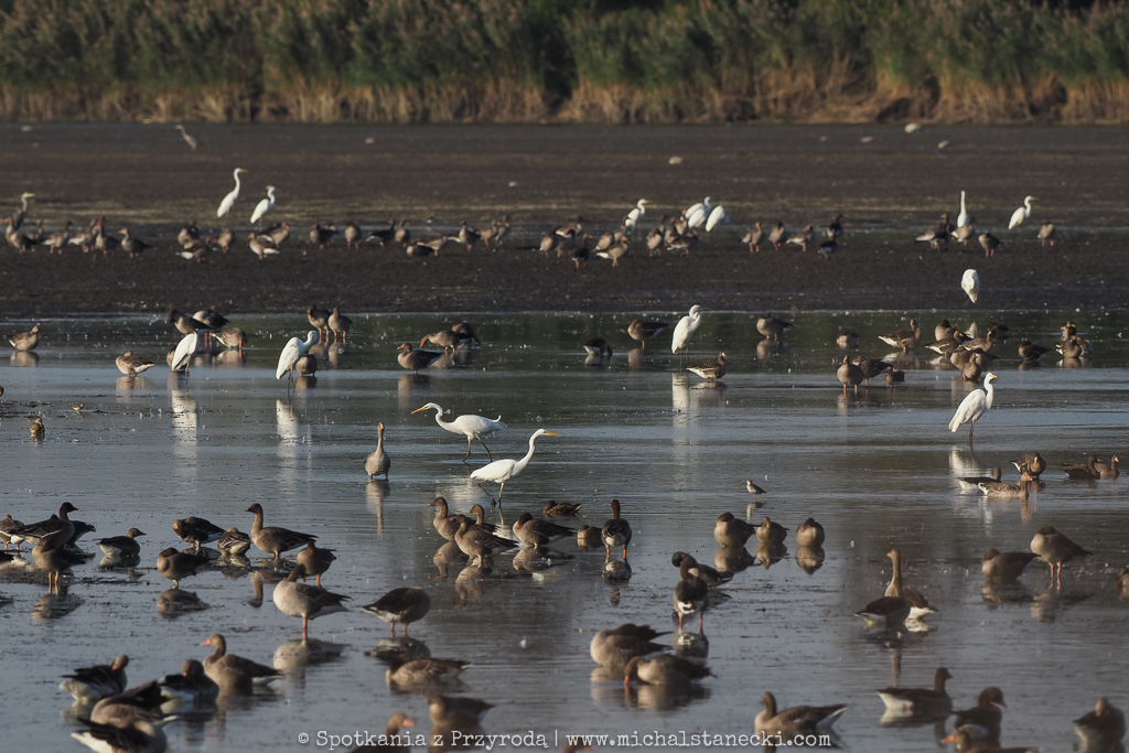 W tych ogromnych stadach ptaków na ogól jest spokojnie. Gęsi odpoczywają śpiąc, rodziny łabędzi wolno „dryfują”, siewkowce żerują spacerując lub biegając po błocie, czaple polują na płyciznach (często w pobliży trzcin), a kaczki leniwie pływają co jakiś czas prezentyując nam swoje kupry podczas nurkowania. Jednak co pewien czas nad tym sielankowym ptasim światem pojawia się cień sylwetki drapieżnika. To wystarczający bodziec do akcji. Tysiące ptaków, nie chcąc stać się ofiarą bielika, czy sokoła wędrownego, podrywa się do lotu, przegrupowuje w powietrzu i po ustąpieniu zagrożenia ląduje z powrotem odpowiednio na wodzie lub lądzie. I wraca spokój, aż do kolejnej aktywności drapieżnika. Obserwacje ptaków podczas przelotów dają możliwość zobaczenia ptaków w ogromnych ilościach, co już jest wielkim przeżyciem dla obserwatora. Możliwość ich przeglądania i wypatrywania przedstawicieli rzadkich gatunków to dodatkowa zabawa. A do tego dochodzi możliwość fotografowania. Czy miłośnik ptaków może chcieć czegoś więcej?