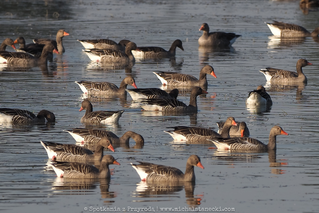Zdecydowanie najwięcej jest zwykle gęsi. W zależności od etapu przelotów są to gęgawy, gęsi zbożowe i białoczelne.