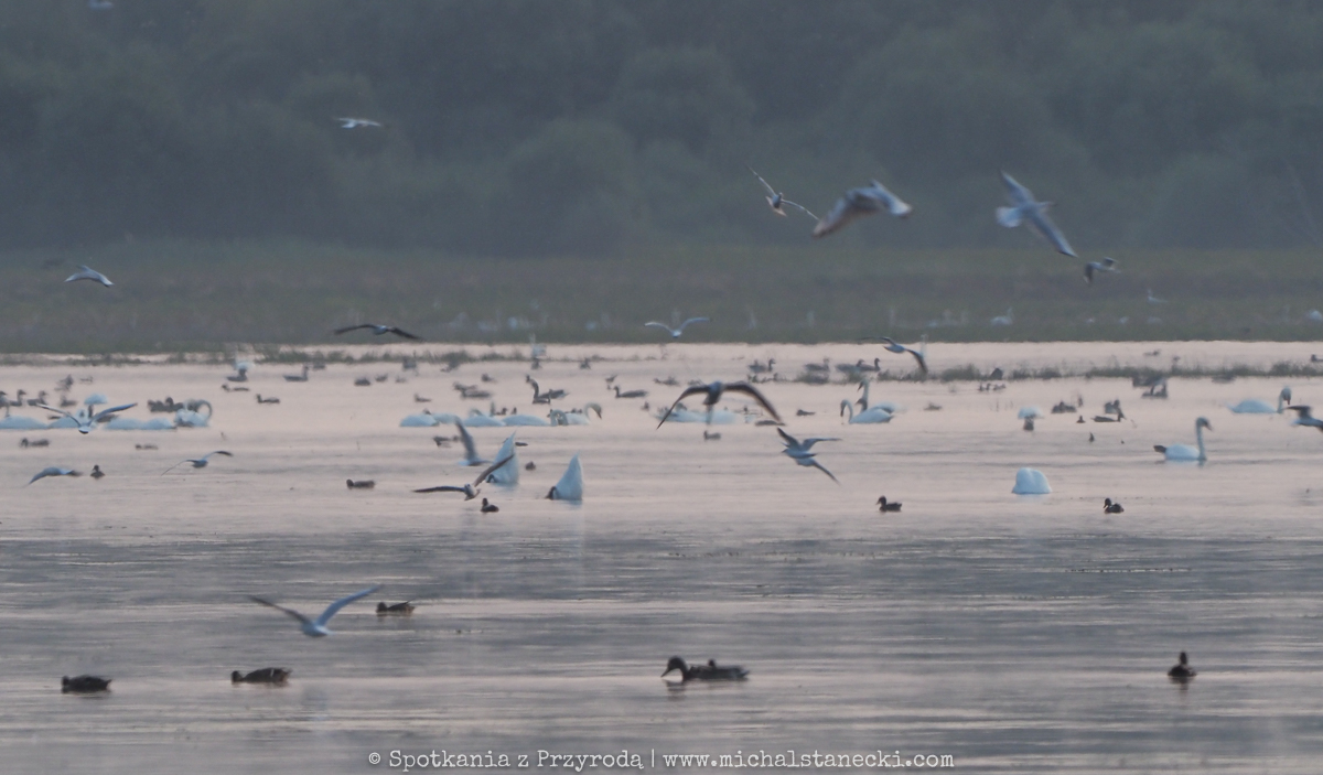 Podczas większości tych wszystkich aktywności liczyliśmy ptaki. W ramach Wielkiego Roku, czyli obserwacji w ciągu roku kalendarzowego, na naszą listę trafiło 196 gatunków. Pierwszy raz na polskiej ziemi udało się zobaczyć mornele i czaplę nadobną. Te dwa gatunki pojawiły się w „naszej” okolicy. „Zaliczanie” innych rzadkości, których w tym roku w Polsce nie brakowało, zdecydowanie sobie odpuściliśmy. Cały czas ogromną frajdę sprawia nam obserwowanie gatunków dość pospolitych. W ostatnich tygodniach szukaliśmy m.in. morskich kaczek na śródlądowych wodach. Do tych pospolitych dochodziły te, których nie obserwuje się na co dzień i było to zawsze dodatkowym bonusem. Tak było np. z płomykówką, której tegoroczną obserwację zaliczamy do bardziej emocjonujących. Poza konkretnymi gatunkami niezmiennie bardzo nas ekscytuje oglądanie dużych zgrupowań ptaków. Możliwości takich obserwacji oferuje nam głównie rezerwat na Jeziorsku. Najczęściej były to wieczorne zlotowiska żurawi, ogromne stada odpoczywających gęsi, duże zgrupowania siewek i chyba największe liczebności, czyli wielogatunkowe stada kaczek. Dość spektakularnie wyglądają też czaple białe, których czasem potrafią zebrać się setkami. Wyobraźcie sobie tysiące ptaków podrywających się do lotu, w obawie przed nadlatującym bielikiem. Takie obrazy, a także towarzyszące temu dźwięki na długo pozostają w pamięci. Jak wielu innych birdwatcherów liczymy również gatunki widziane i słyszane podczas tych właśnie jednodniowych wycieczek. Rekordowy niezmiennie pozostaje maj (124 gatunki podczas nieformalnego Rajdu Ptasiarzy i 91 i inny dzień), choć i w zimowych miesiącach można obserwować około 60 gatunków.