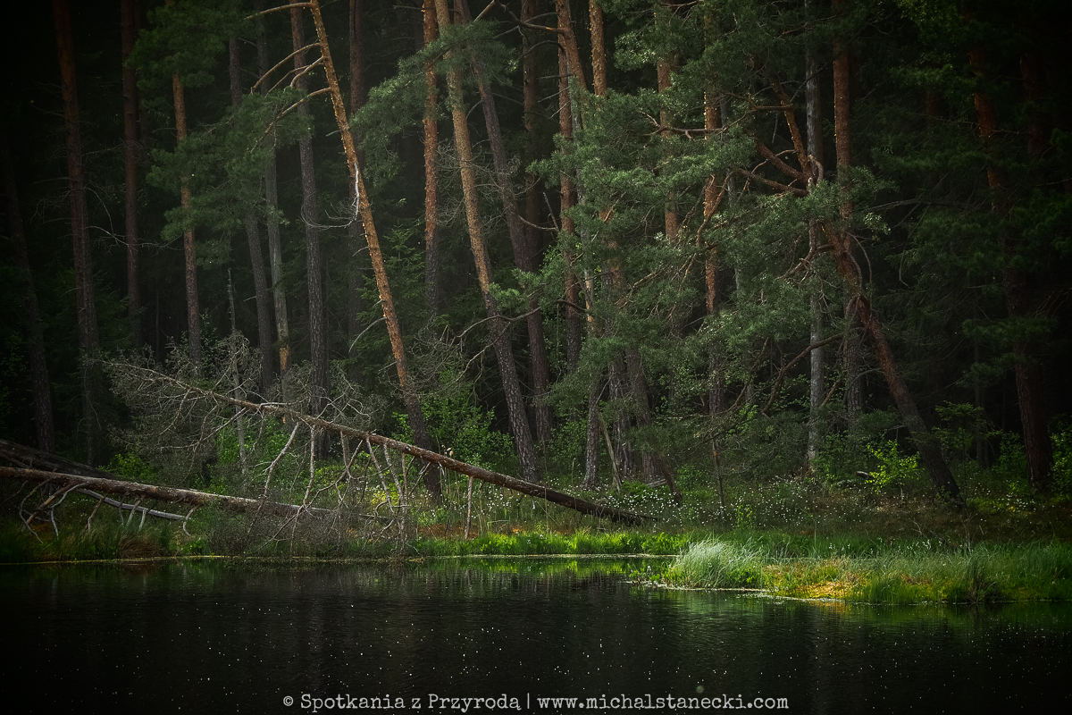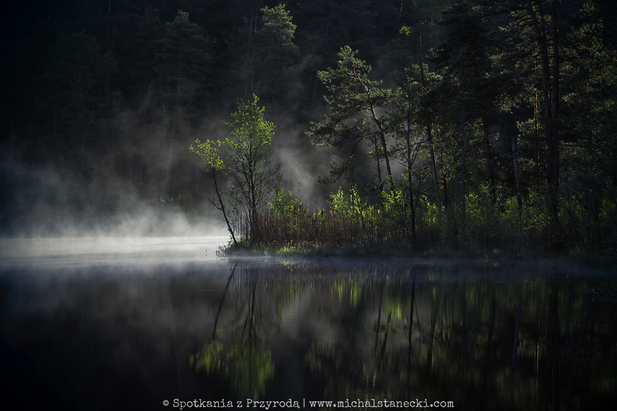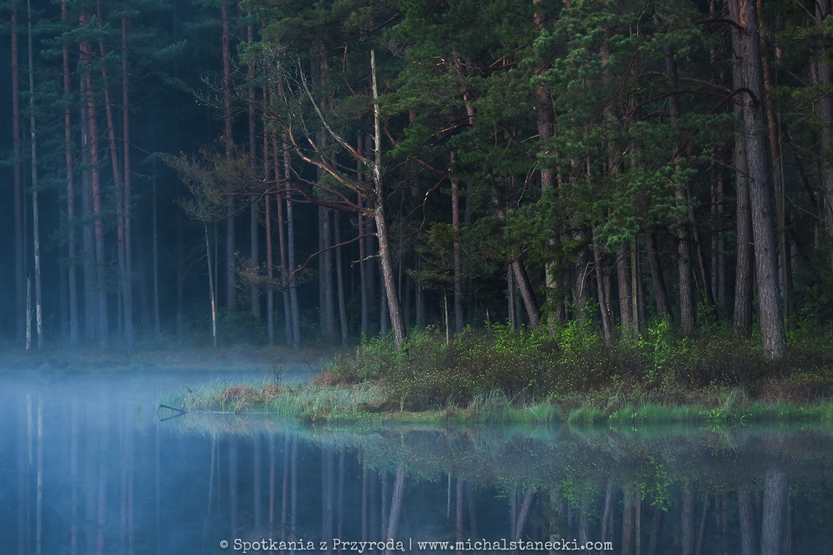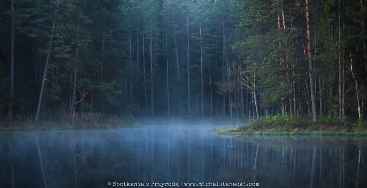 Maszerując po szlakach Wigierskiego Parku Narodowego podglądaliśmy przyrodę północno-wschodniej Polski. Ten rejon to głównie lasy i jeziora, choć nie brakuje też pofałdowanych krajobrazów przywodzących na myśl ich lodowcowe pochodzenie. Najbardziej oczarowały nas leśne jeziora. W kilku takich miejscach krajobraz przypominał obrazki widywane w Finlandii. Te jeziora to nieduże bagniste „suchary” otoczone grubym kożuchem pływającej roślinności. W oparach porannej mgły pływały tam gągoły i nurogęsi. Okoliczne bory przypominały skandynawską tajgę. Swoje uroki stopniowo odsłaniała też przed nami Czarna Hańcza, wyjątkowa rzeka, której miejscami bagnista dolina przecinała lasy tworząc niewiarygodnie piękne zakątki. Cisza, spokój i wrażenie „dzikości” tych wszystkich miejsc najbardziej urzekały o świcie…