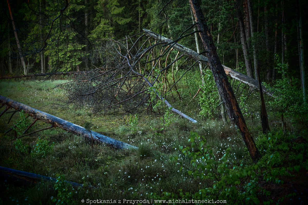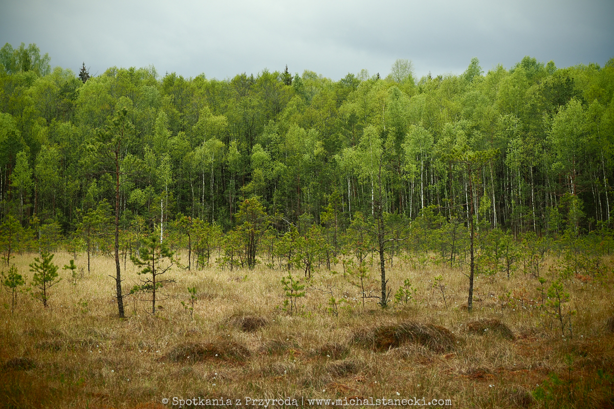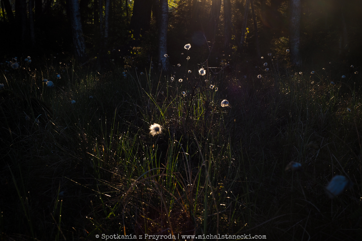 granica lasu i bagna porośnięta wełnianką