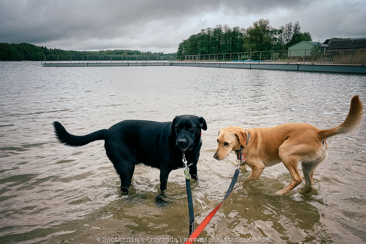 Nasze psy gaszące pragnienie w wodach jeziora Hańcza