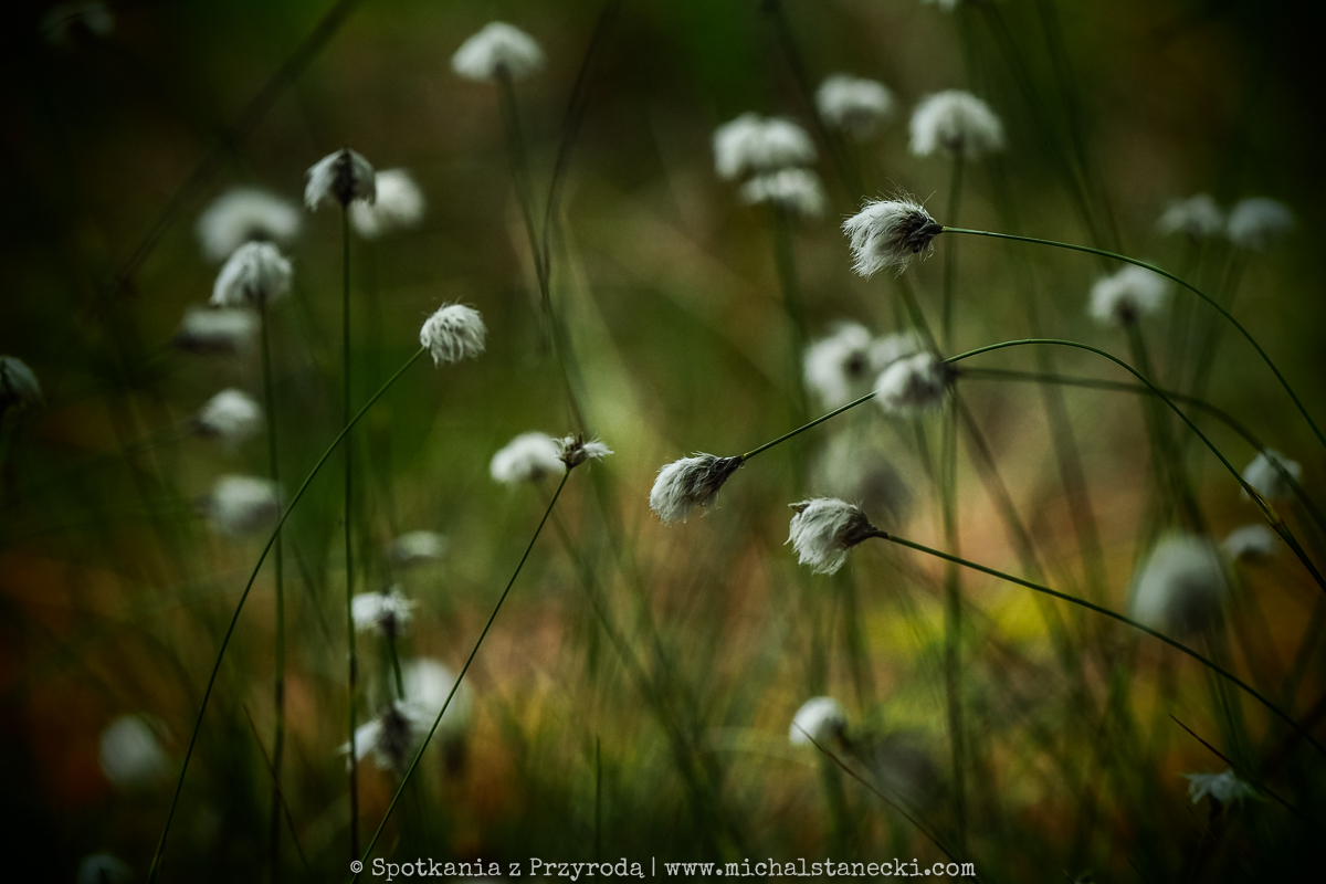 brzegi jezior porastała kwitnąca wełnianka