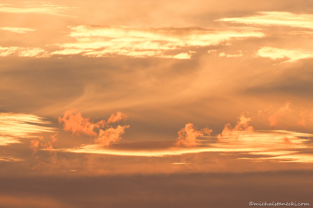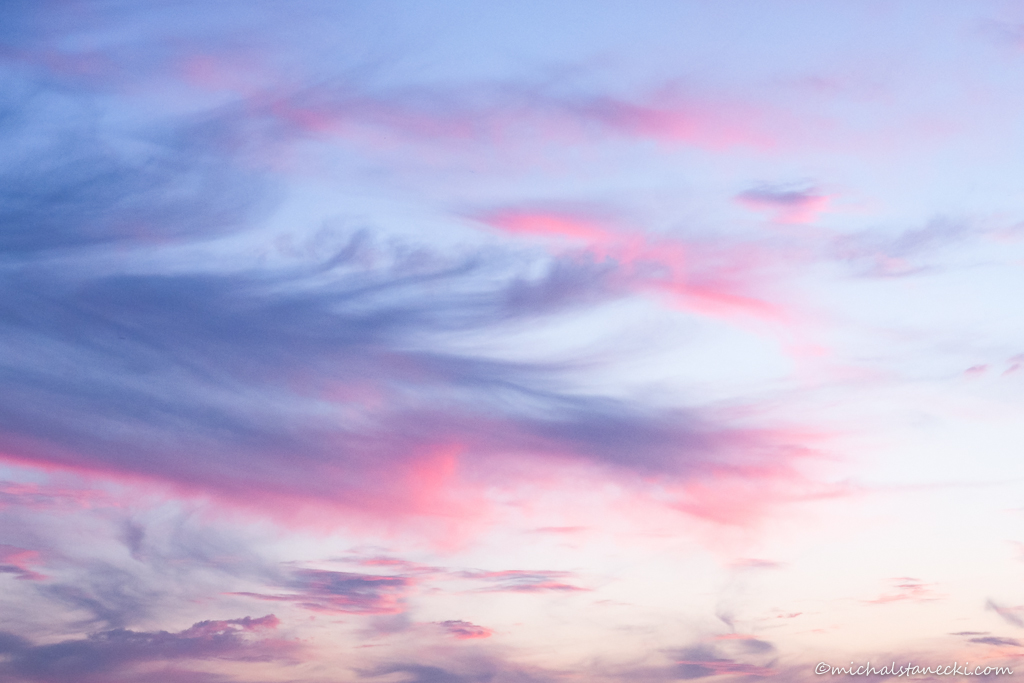 po ciepłych dniach przychodzą wieczory z dynamicznymi zmianami na niebie, gdy z kolorowych obłoków rodzą się ciemnie burzowe chmury