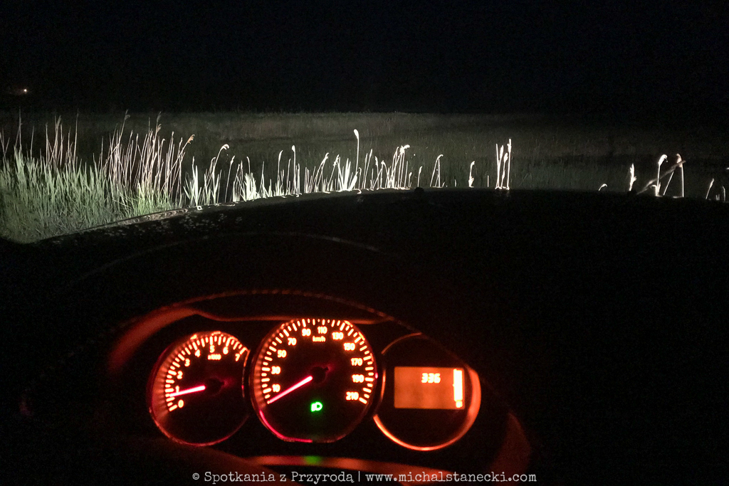 Budzik odzywa się w samym środku nocy. Pozytywnie zmotywowani wstajemy jednak bez problemu. Po chwili pachnie kawa, a piknikowej torbie ląduje prowiant, termosy i liczne przekąski dla psów. Jemy lekkie śniadanie, Rafa z Ibrą też pochłaniają część swojej śniadaniowej porcji i jesteśmy gotowi do wyjazdu. Do auta pakujemy też torbę ze sprzętem fotograficznym i kurtki przeciwdeszczowe. Słyszymy pierwsze dźwięki. To dochodzące z oddali buczenie bąka i tym sposobem to własnie ta wyjątkowo tajemnicza czapla otwiera naszą listę. Jest 3:18. Ruszamy. Zalegają całkowite ciemności, jest mokro, a termometr pokazuje 8 stopni.