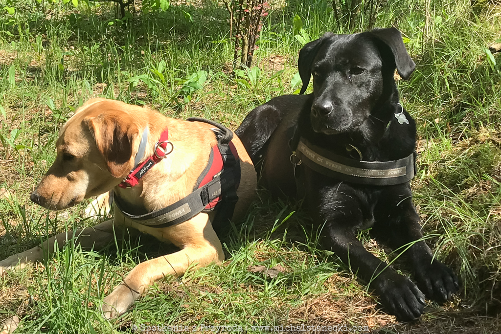 Psy zaliczyły super aktywny dzień w ciągu którego oprócz spacerów po łąkach, lasach i groblach stawów, zaliczyły kąpiel w rzece, a także pożarły kilka misek karmy, paczkę kabanosów i całą stertę gryzaków. Także one zaliczyły swój (pierwszy razem) rajd. Plan został zrealizowany.