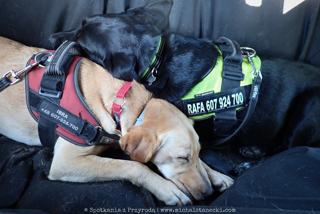 Oczywiście tylko my, bo nasze psy cały czas wyglądają na zachwycone. W czasie przejazdów regenerują się śpiąc na tylnej kanapie auta, by po kilkunastu minutach z nową energią ruszyć na kolejny „ptasi szlak”.