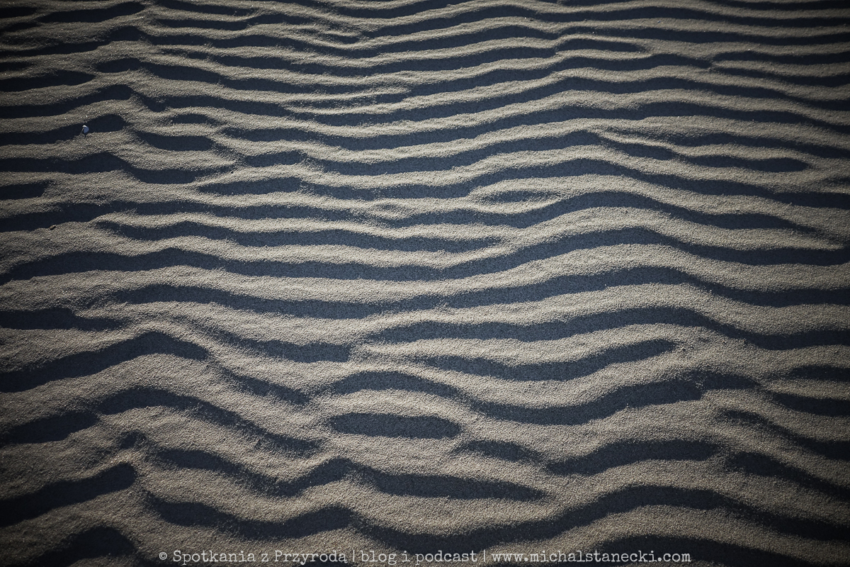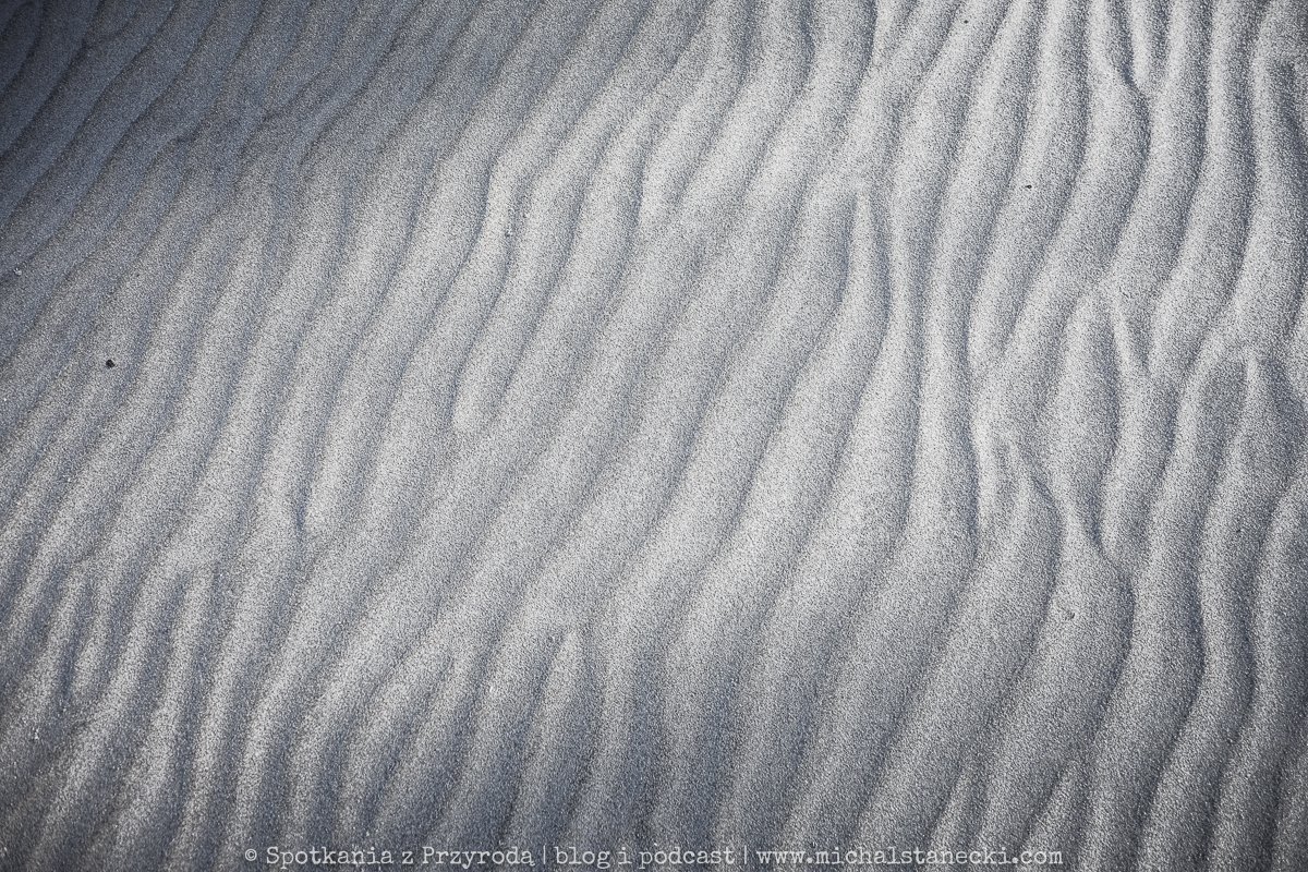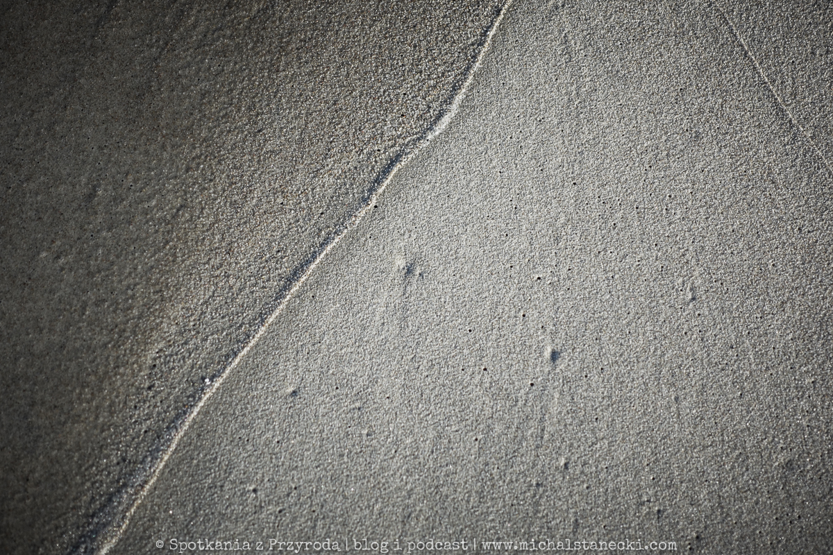 Czasem trudno trafić na niezadeptany odcinek plaży, ale warto patrzeć pod nogi, bo nieraz woda i wiatr kreują urzekające grafiki …