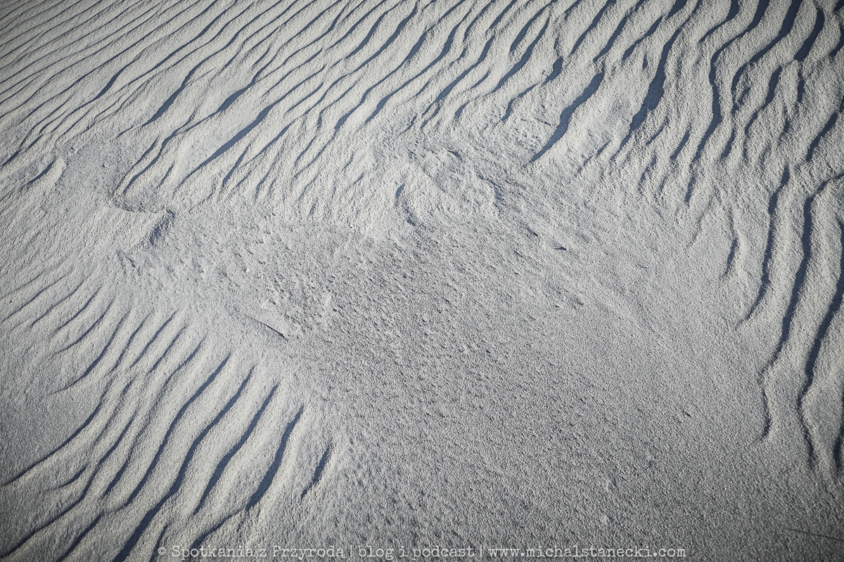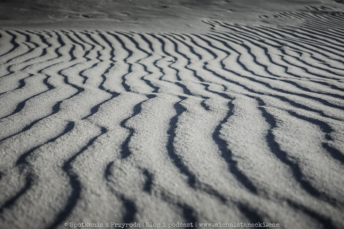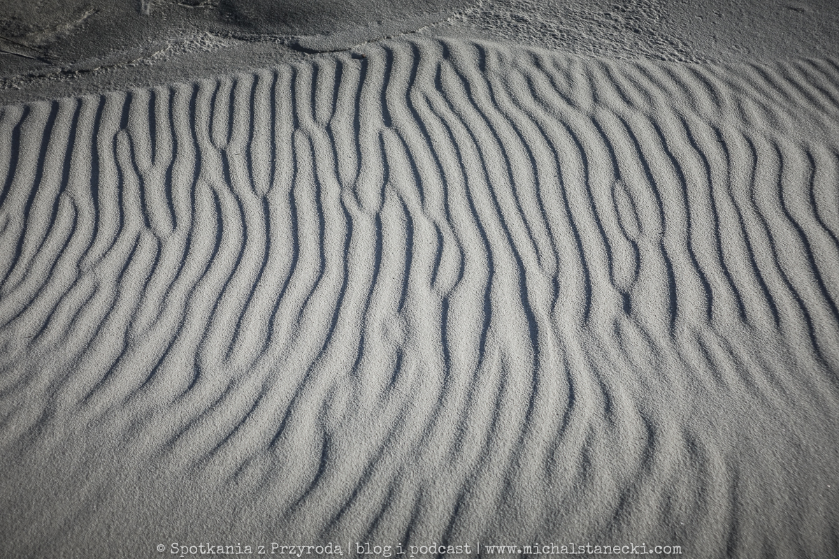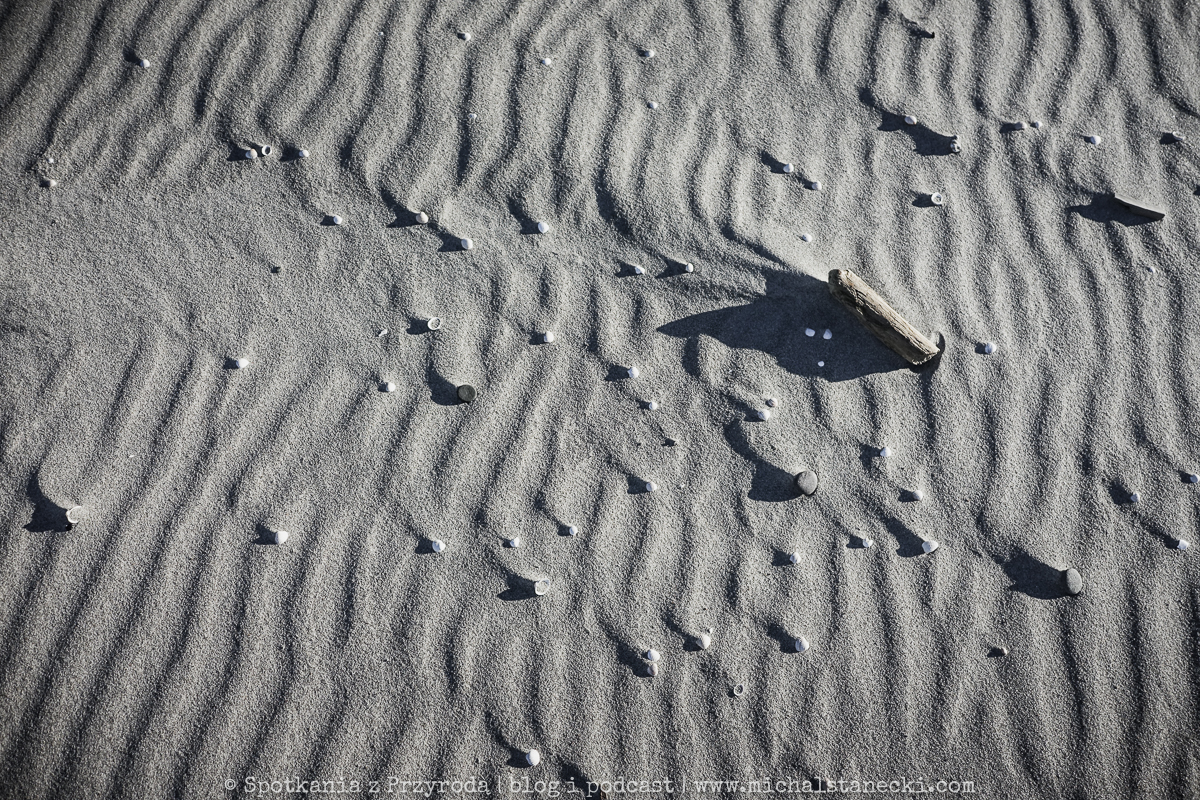 Czasem trudno trafić na niezadeptany odcinek plaży, ale warto patrzeć pod nogi, bo nieraz woda i wiatr kreują urzekające grafiki …
