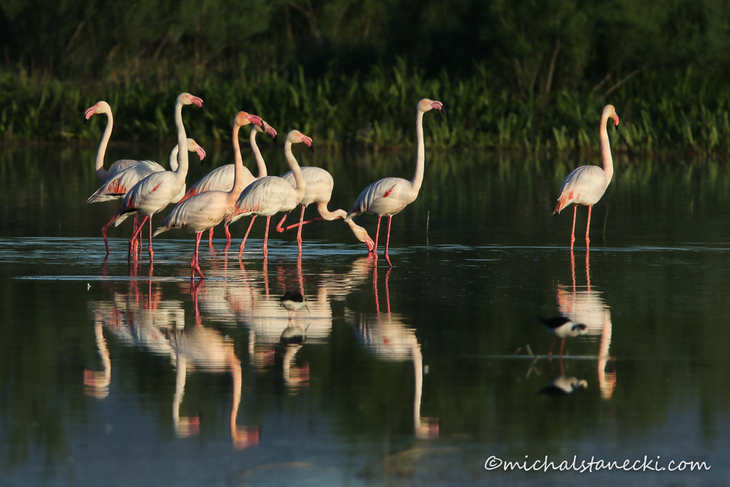 Są tu flamingi, szczudłaki, szablodzioby, sieweczki, biegusy i brodźce kilku gatunków. Są mewy czarnogłowe, rybitwy, czaple siwe i nadobne, krzyżówki, krakwy, płaskonosy, głowienki, perkozy dwuczube i perkozki. Choć z dużej odległości, to jednak z ogromną radością obserwujemy po raz pierwszy w życiu modrzyka i sterniczki.
