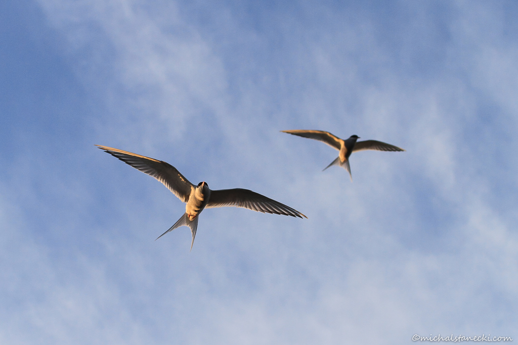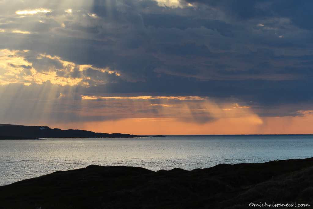 Słońce powoli schodzi do horyzontu, dając ciepłe barwy. Wiedząc, że nie zajdzie nie muszę się spieszyć. Zaliczam też bliski kontakt z Morzem Barentsa. Fotografując rybitwy chodzę po skalistym brzegu. Gdy stawiam nogę na jednej ze skałek czuję, że zsuwam się dosłownie jak po pochylni. Zanim zdążyłem zareagować stoję już po kolana w morzu. Zanim buty przemiękły wyskakuję z wody. Skała, na której stanąłem była wyjątkowo mocno obrośnięta glonami. Uświadamiam sobie, że przecież w tym miejscu mogło być dużo głębiej i daje mi to mocno do myślenia. Wracam na kwaterę. Dzień kończę kilkoma fotografiami „w słońcu o północy”. Późnym wieczorem skurcze żołądka przypominają mi o tym, że ostatni posiłek jadłem wiele godzin temu. To był długi dzień pełen niezapomnianych wrażeń. Na jedzenie zwyczajnie nie było czasu…