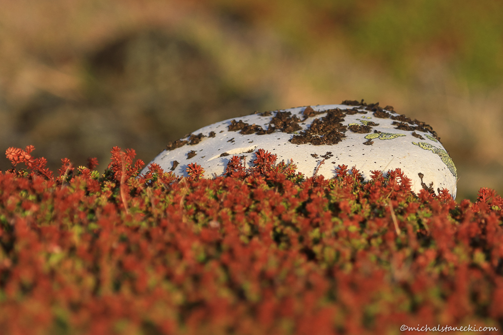 Nasze auto z resztą grupy ginie powoli w czarnej dziurze tunelu. Zakładam plecak ze sprzętem i powoli ruszam w kierunku przeciwnym do morza. Z przyjemnością odnotowuję fakt, że siła wiatru słabnie. Pojawiają się pierwsze chwile ciszy. Liczne obłoki pędzone do tej pory wiatrem zwalniają i na dłużej odsłaniają błękit nieba. Słońce w tej części Europy świeci pod takim kątem, że praktycznie cały czas, kiedy nie jest zasłonięte chmurami daje doskonałe światło do fotografowania. Po kilku minutach trafiam na dużą kolonię lemingów. W jednym miejscu krzyżuje się ich kilka tras szybkiego ruchu. Naprawdę szybkiego. Zwierzątko dostrzegające człowieka potrzebuje dosłownie sekundy do pokonania takiej ścieżki i czmychnięcia do jednej z wielu norek. Nie mogąc doczekać się pojawienia tych małych gryzoni idę dalej. Powoli wspinam się na płaskowyż. Co jakieś trafiam na kolejnych przedstawicieli awifauny: bataliona, sieweczke obroźną, łęczaka, siewkę złotą, pliszkę żółtą, świergotka łąkowego, wydrzyka (w jasnym i ciemnym ubarwieniu). Otacza mnie wielka otwarta przestrzeń.