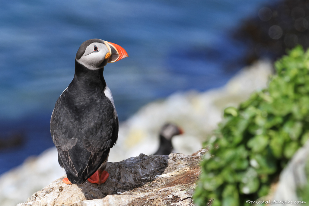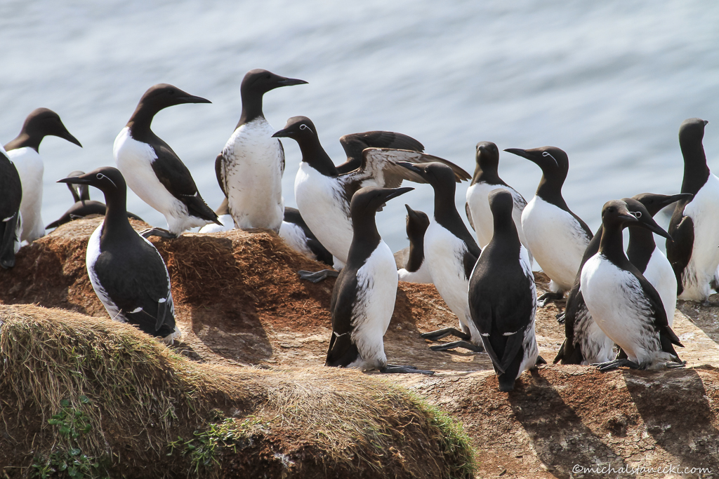 Wydeptaną ścieżką wzdłuż wybrzeża idę dalej rozpoczynając lekką wspinaczkę pod górę. Mijam uśmiechniętych, wręcz rozpromienionych ludzi. Mam wrażenie, że nie tylko ja przeżywam stan duchowego uniesienia. Gdzieś spod skały dochodzi mnie odgłos serii zdjęć wykonywanych przez Piotra. Na statywie ustawił aparat z superteleobiektywem, w ręku drugi wyposażony w zoom. Wymieniamy uśmiechy i idę dalej. Teraz kolej na sesje z nurzykami, alkami i kormoranami. W niektórych miejscach ptaki oddalone są od ścieżki nie bardziej niż na jakieś dwa metry. W tym miejscu mogę niemalże dotknąć swojej pasji. Kolejna grupa nurzyków, mewy srebrzyste i siodłate.