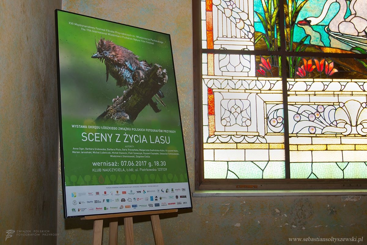 Jedną z imprez zorganizowanych w ramach XVII Międzynarodowego Festiwalu Filmów Przyrodniczych im. Włodzimierza Puchalskiego była wystawa prac członków Okręgu Łódzkiego ZPFP pod tytułem „Sceny z życia lasu”. Wśród wystawianych zdjęć znalazło się kilka moich prac. Miałem również przyjemność zabrać głos podczas wernisażu wystawy, który odbył się 7 czerwca 2017 i zgromadził jak zwykle wielu pasjonatów fotografii przyrodniczej.