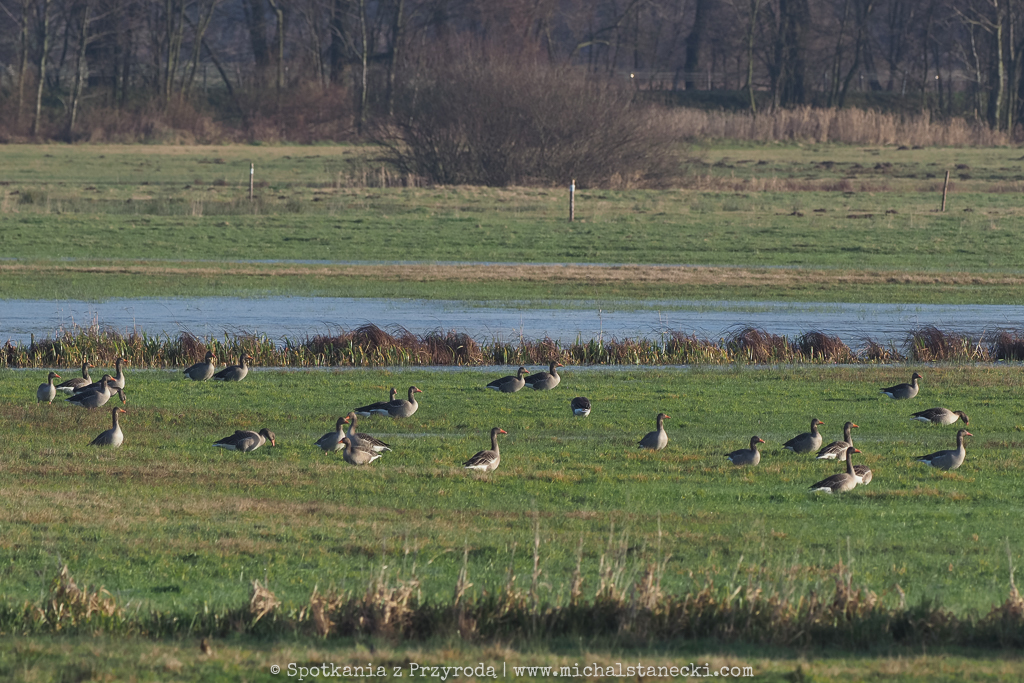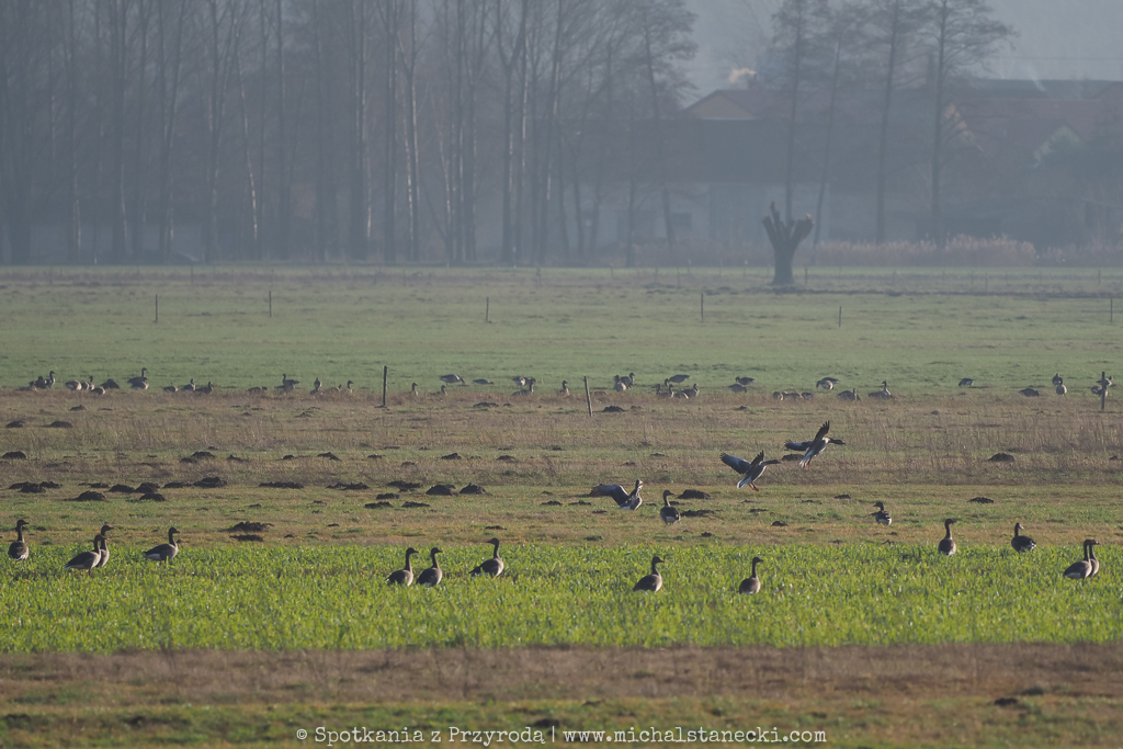 Po wielu dniach deszczu, wiatru i chmur zaświeciło dawno nie widziane SŁOŃCE, które chwilowo odczarowało nasz ponuro-zimowy świat. Przez kilka godzin można było spacerować w istnie wiosennych warunkach. Świat z powrotem nabrał barw, a ptaki pokazywały się w składzie gatunkowym, który zwykle możemy oglądać na przełomie lutego i marca (m.in. gęgawy, gęsi zbożowe i białoczelne, żurawie, czajki). Przez chwilę można było poczuć wiosnę…