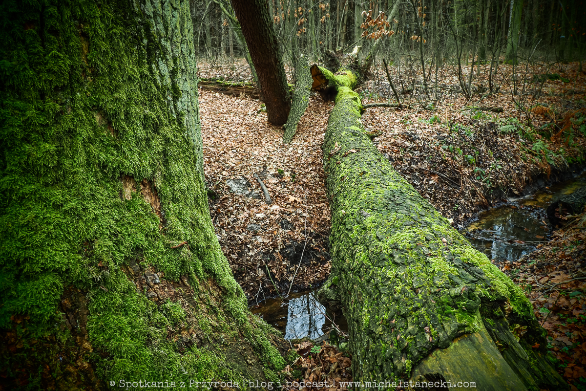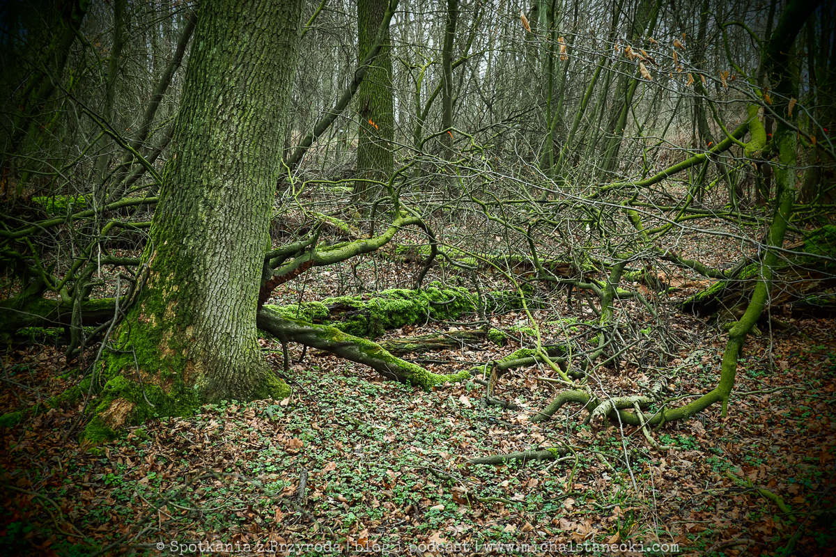 Równo rok temu trafiłem do fantastycznego lasu. Stare drzewa, dostojnie grube, fantastycznie obrośnięte mchem. Piękne dęby. Te stojące i te leżące. Masa cennej materii zmieniającej się leniwie i przyciągających kolejne formy życia. Las poprzecinany licznymi ciekami, miejscami zalany. Cudowne miejsce. Wracając z sobotniej wędrówki postanowiłem tam zajrzeć…