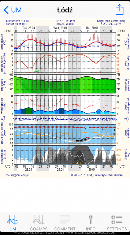 INFOMETEO.PL – strona internetowa będąca zbiorem różnych prognoz pogody – na przykładzie Łodzi.