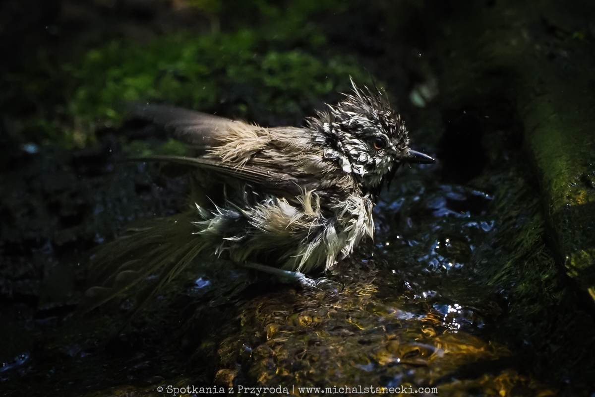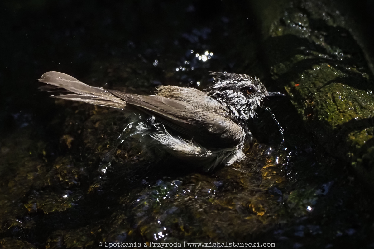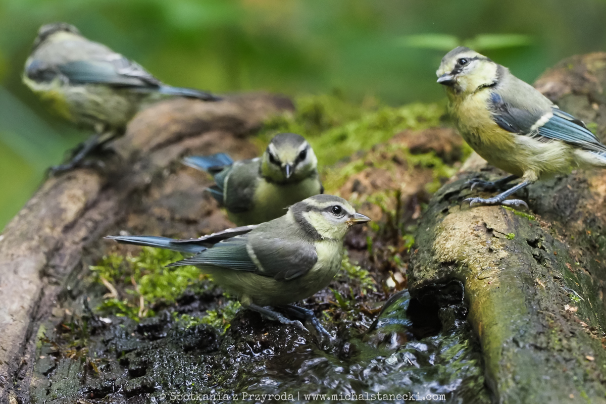 Woda, która z lekkim szumem spływa po pniu wierzby, ściąga liczne ptaki od brzasku do zmroku. W środku dnia zdarzają się masowe naloty mieszanych stad. Zwykle dominują sikory (bogatki, modraszki, ubogie, czarnogłówki, sosnówki i czubatki), ale pokazują się też rudziki, kapturki, pierwiosnki, piecuszki, kosy, sójki, dzięcioły duże i największe w tym zestawie grzywacze. Systematycznie pojawia się również strzyżyk – najbardziej ruchliwy malec ze wszystkich użytkowników tego kąpieliska…