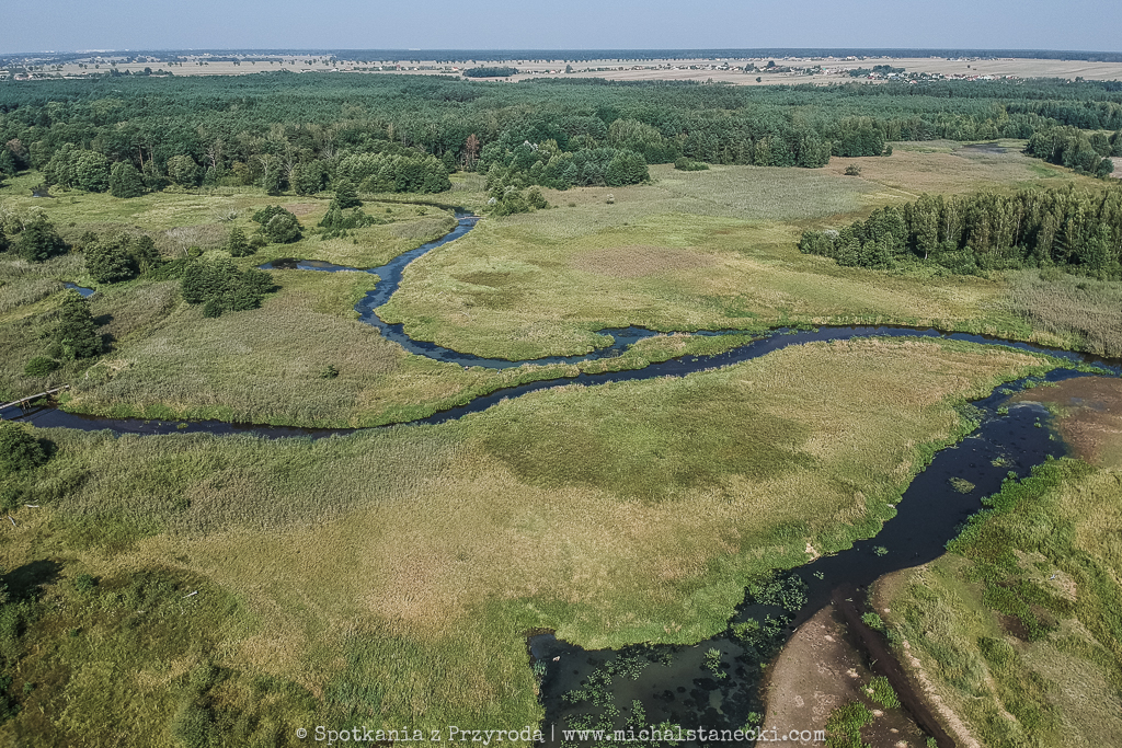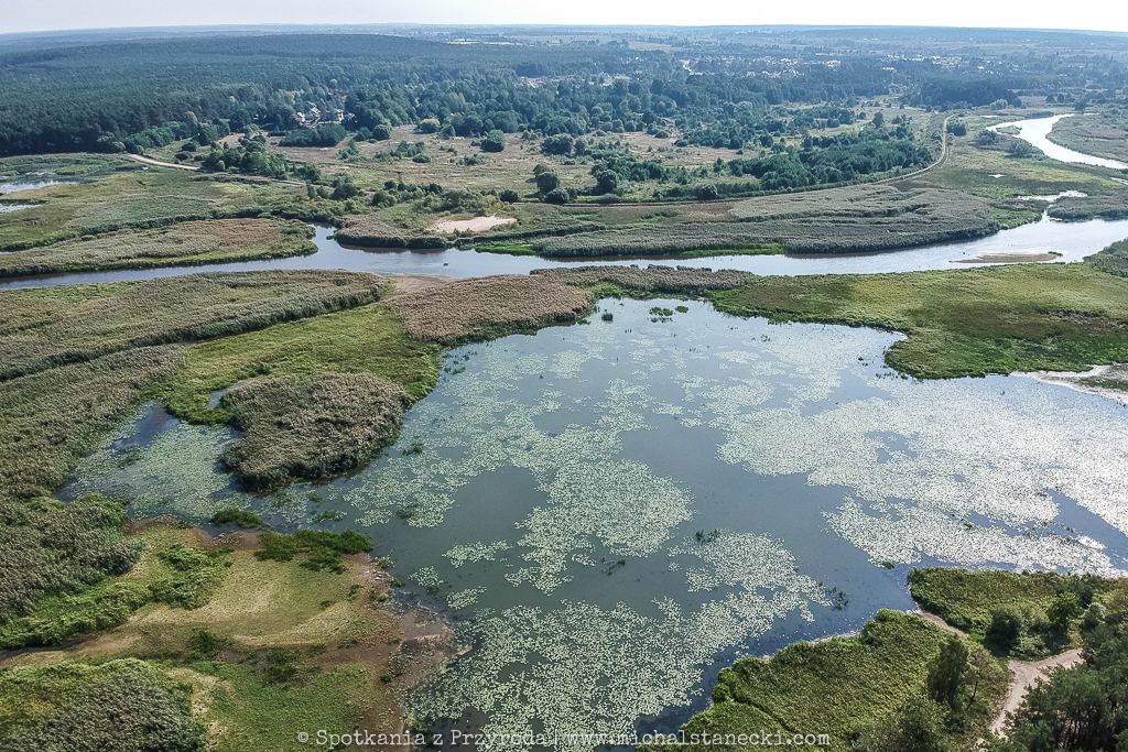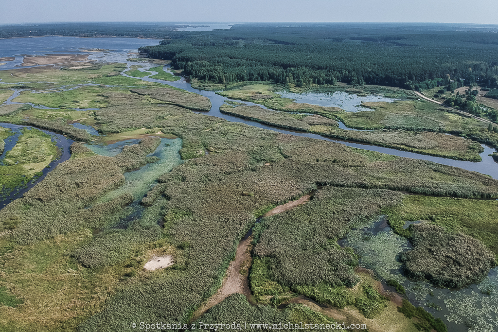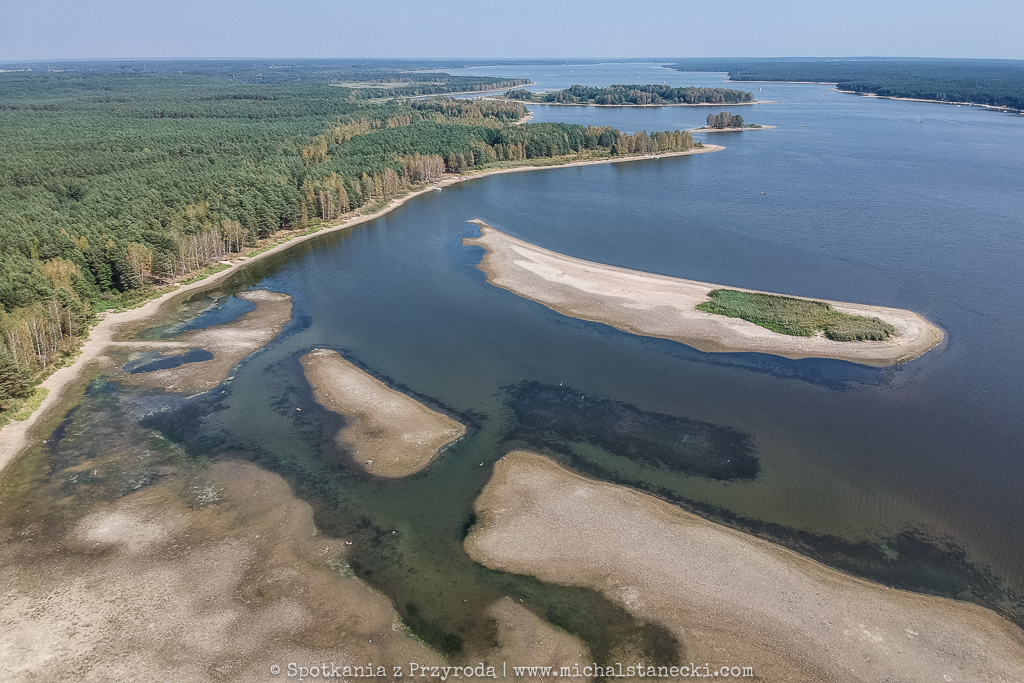 Tym razem wzniosłem się nad drugi z naszych sztucznych zbiorników. Nad południową część Zalewu Sulejowskiego z rejonu ujścia Luciąży do Pilicy, a potem ciut dalej w kierunku północnym. Pierwsze miejsce to niesamowity świat roślinności przecinanej licznymi kanałami. W niektórych miejscach płytka woda tworzy mniejsze i większe „jeziorka”, na których żerują kaczki, łabędzie i czaple. Widok zapierający dech. Drugie miejsce to typowa juz bardziej typowa „cofka”, podobna do tej na Jeziorsku. Odsłaniające się łachy i błoto goszczą kaczki, mewy, czaple i ptaki siewkowate.