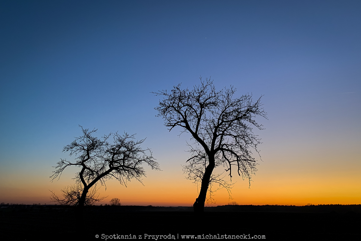 Kilkanaście minut po zsunięciu się słońca za linię horyzontu zaczęły odzywać się kuropatwy. Ich głos towarzyszył nam przez kilka minut marszu polną drogą. Po wejściu na leśny odcinek trasy zanurzyliśmy się w ciszy. Ustało słyszane z daleka ujadanie psów. Nie było też słychać samochodów, bo gminna droga została daleko w tyle. Księżyc oświetlał drogę i wieczór wydawał się aż nienaturalnie jasny. Było bezwietrznie. Towarzyszył nam tylko odgłos własnych kroków. Po przejściu około 8 kilometrów doszliśmy do celu. Można było rozpalić w piecu i oddać się lekturze książek. Zapadł wieczór i jednym z ostatnich akcentów dnia było ciche nawoływanie samicy puszczyka. Piątkowy wieczór był niezłą obietnicą ciekawie zapowiadającej się soboty…