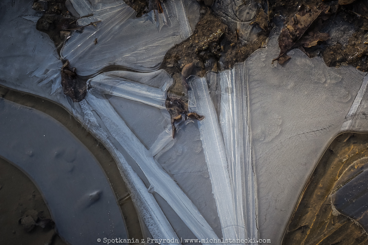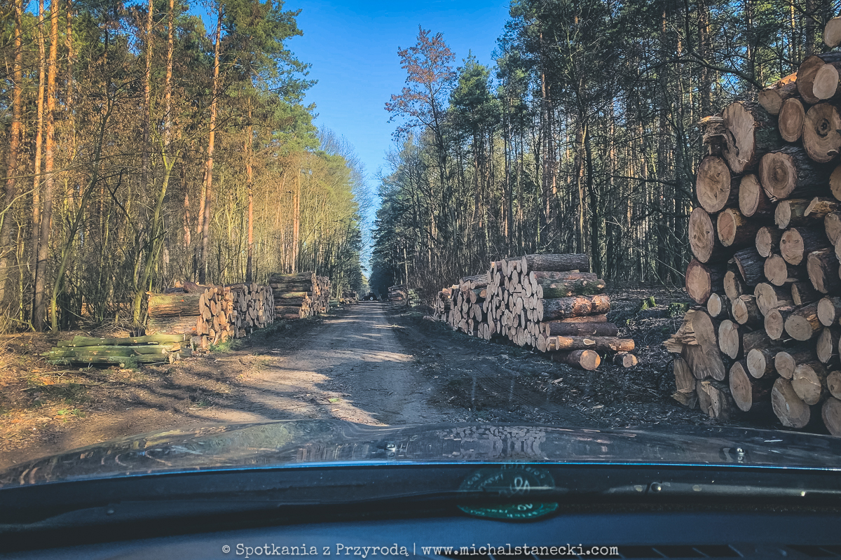Pojechaliśmy zajrzeć do lasu (leśnego rezerwatu) w okolicy Szadku. Na dzień dobry przywitała nas nowa i dość duża wycinka, co dosyć mocno ostudziło nasz entuzjazm. Niewielki mróz pościnał kałuże na ścieżkach, tworząc ciekawe wzory i faktury. Zagłębiając się w las i zbliżając do rezerwatu, słyszeliśmy coraz to nowe gatunki. Kowaliki, sikory, pełzacze i bardzo aktywne dzięcioły duże towarzyszyły nam przez większość trasy. W rejonie rezerwatu dołączyło charakterystyczne terkotanie paszkotów i rozchodzące się po całej okolicy donośne bębnienie dzięcioła czarnego.