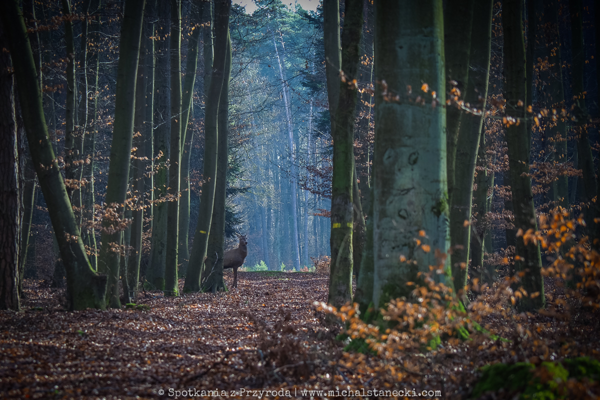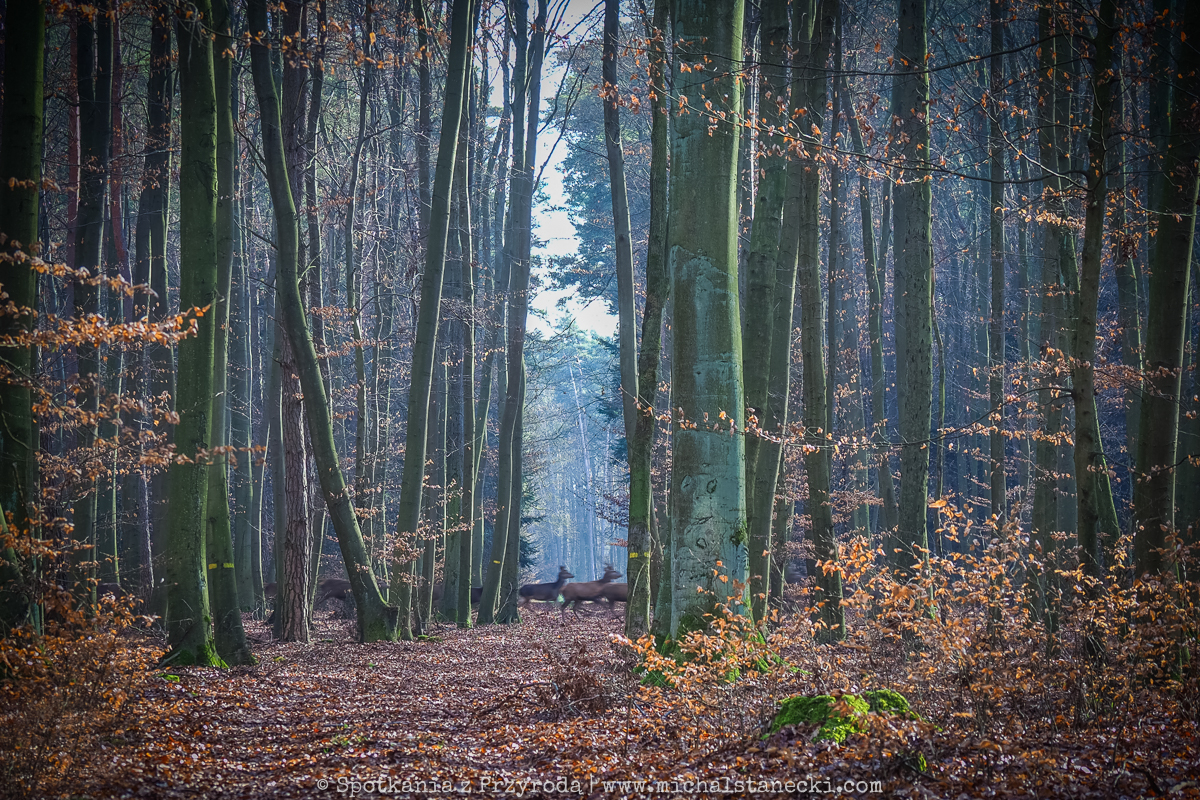 W niedzielę zabrałem psy na kilkunastokilometrowy spacer. Podczas marszu wzdłuż Neru, położonych w jego dolinie łąk i lasów, do listy obserwacji udało się dopisać gawrony (w głośnej kolonii), zimorodka, a także jastrzębia polującego w środku lasu. Ubarwieniem wyprawy było przecięcie się naszego szlaku z przemarszem stada jeleni. W tym miejscu nie widziałem ich od kilku lat, w związku z czym nie byłem dostatecznie czujny i zanim wyjąłem aparat było już praktycznie po wszystkim.