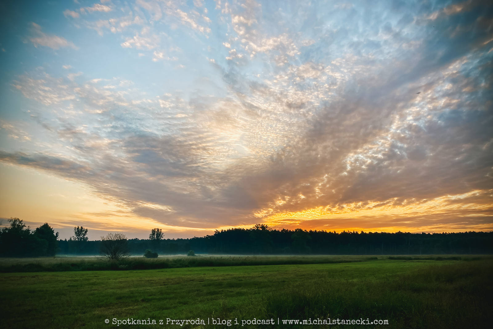 W czerwcu kilka razy biwakuję na terenie siedliska. Daje mi to możliwość poznania okolicy w porze świtu, zmierzchu, a także nocy. W pamięci zostają bliskie spotkania z sarnami na łąkach i bobrami na rzece.