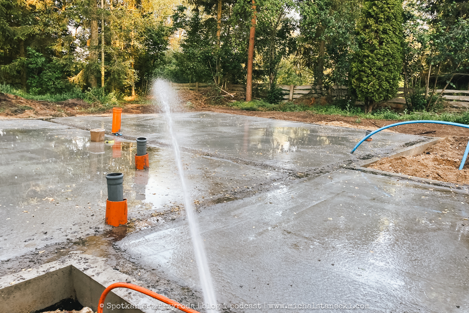 Po ułożeniu koniecznych instalacji wylewamy płytę fundamentową.