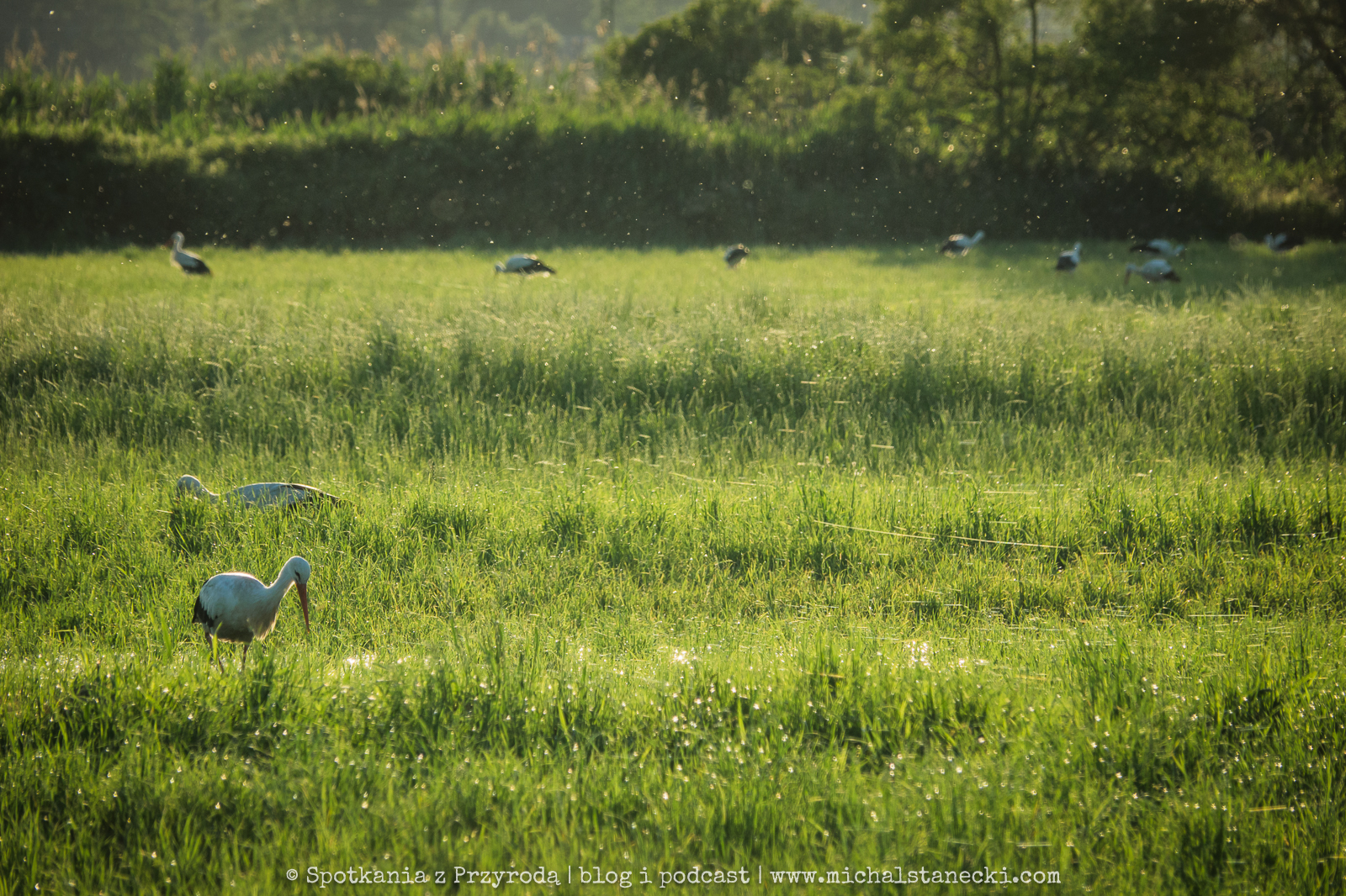 Latem sporo się dzieje. Po dominacji ptaków w maju i czerwcu, w lipcu i sierpniu zaczynają pokazywać się ssaki. Na rzece bobry, na łąkch sarny i zające, a w lesie jelenie, borsuki, łosie i lisy. Ciekawostką są motyle namiotniki, które w swoje gładkie sieci opakowują kilka całkiem dużych drzew. Obserwujemy cały proces ich wylęgania. Leśne rzeczki, które czasowo wypełniają się wodą, ściągają do siebie zwierzęta. W sierpniu na podmokłych łąkach zbierają się bociany, które intensywnie polują przed odlotem. W pewnym momencie jest ich na łące około 60. Pojawia się wśród nich również jeden bocian czarny. Do dudków i bażantów w sąsiedztwie szybko się przyzwyczajamy. Cała okolica jest rozgadana ptasimi głosami. Na koszonych dwa razy łąkch (czerwiec i sierpień), poza bocianami pojawiają się szpaki, jaskółki, kawki i gawrony. Te ostatnie mają swoją dużą kolonie za wsią, po drugiej stronie Doliny :) Leśne babrzysko obserwujemy za pomocą automatycznej kamery.